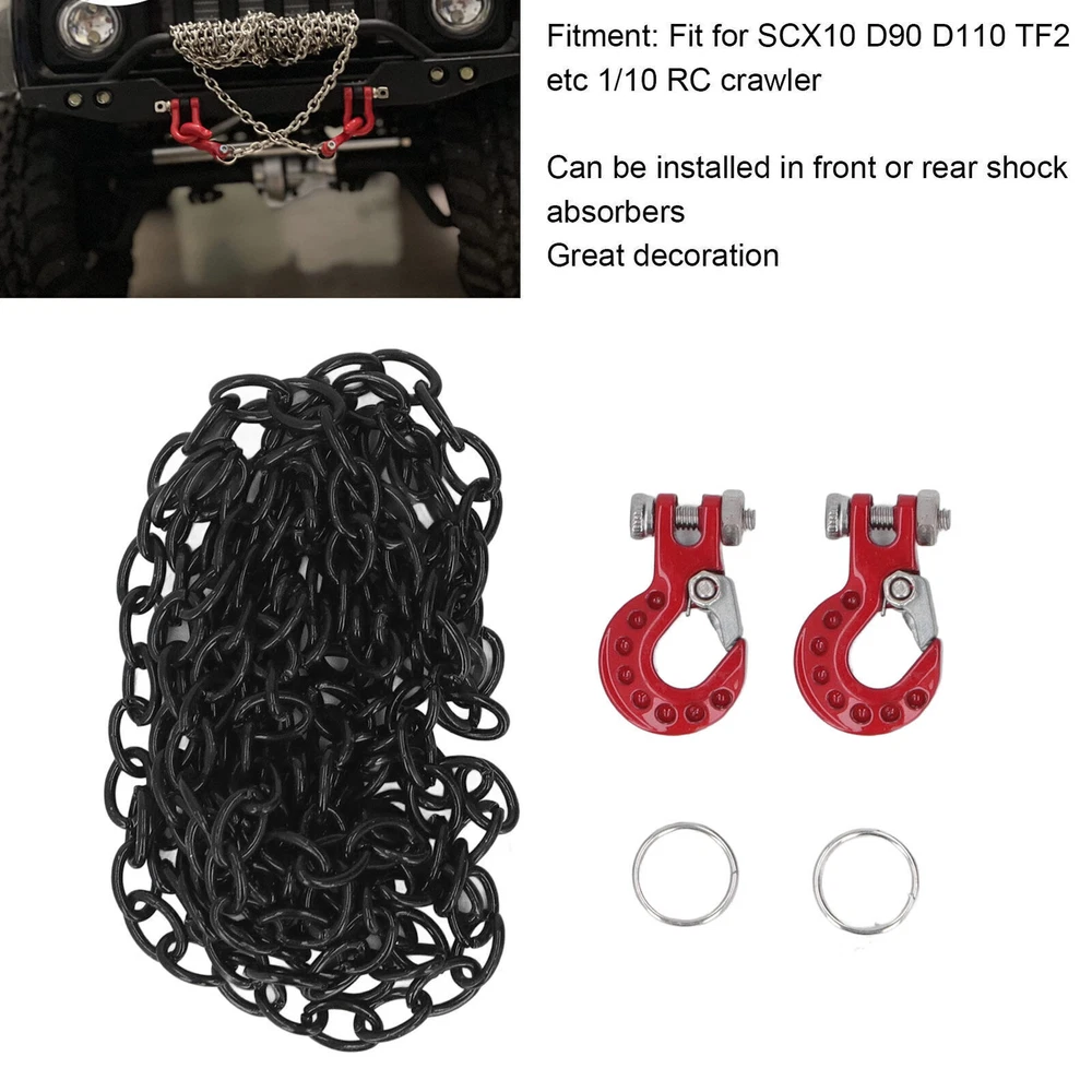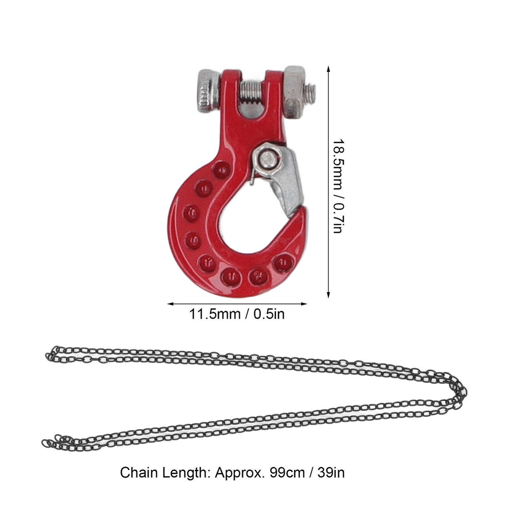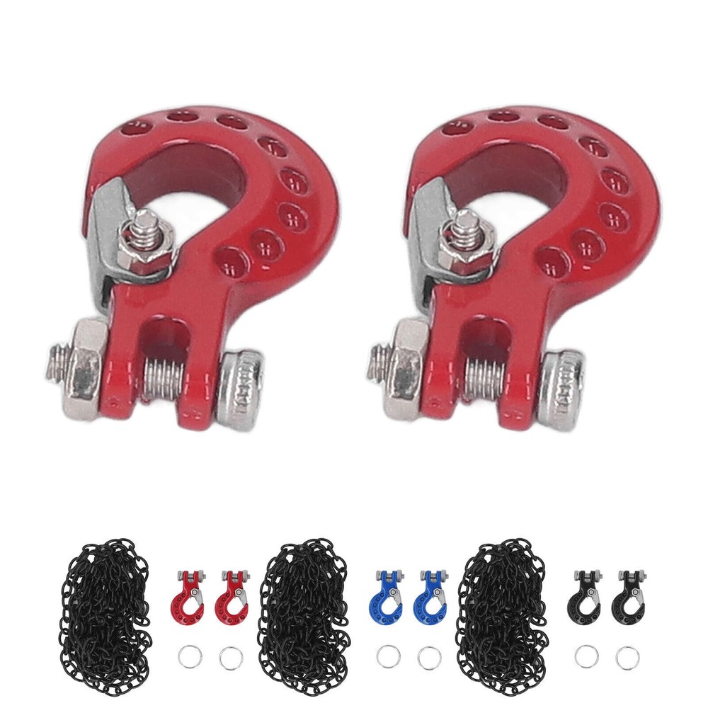Feature: 1. FITMENT: Fit for SCX10 D90 D110 TF2 etc 1/10 RC crawler, easy to install, making RC car more attractive and cool, perfect replacement for the broken one. 2. INSTALLATION LOCATION: RC car tow hook can be installed in front or rear shock absorbers, great decoration to make your car more vivid and attractive. 3. EXQUISITE WORKMANSHIP: Pay attention to details, bright color, no fading, using polishing process, smooth surface and mellow corner, will not scratch skin. 4. MULTIPLE APPLICABLE SCENARIOS: Light weight and in small size, easy to store and carry, suitable for RC car store, outdoor games and competitions, perfect for RC car amateur. 5. ALUMINUM ALLOY MATERIAL: RC tow hook adopts aluminum alloy material, eco friendly, firm and sturdy, anti impact, stable and wear resistant, ensure maximum durability. Specification: Item Type: RC Car Tow Hook Material: Aluminum Alloy Weight: 22g / 0.8oz(approx.) Product Size: Approx. 18.5 x 11.5mm / 0.7 x 0.5in Chain Length: Approx. 99cm / 39in Fitment: Fit for SCX10 D90 D110 TF2 etc 1/10 RC crawler Package List: 2 x Tow Hook 2 x Retaining Ring 1 x Chain Note: Please allow slight error due to manual measurement. Thanks for your understanding.