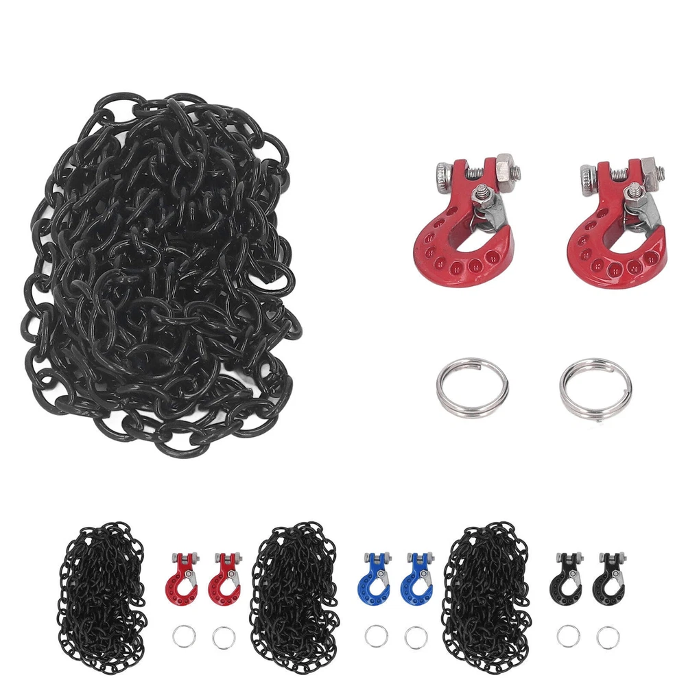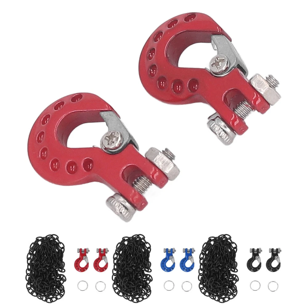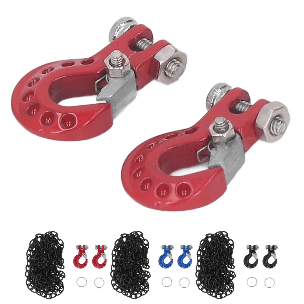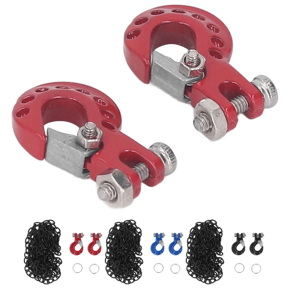 Feature: 1. FITMENT: Fit for SCX10 D90 D110 TF2 etc 1/10 RC crawler, easy to install, making RC car more attractive and cool, perfect replacement for the broken one. 2. INSTALLATION LOCATION: RC car tow hook can be installed in front or rear shock absorbers, great decoration to make your car more vivid and attractive. 3. EXQUISITE WORKMANSHIP: Pay attention to details, bright color, no fading, using polishing process, smooth surface and mellow corner, will not scratch skin. 4. MULTIPLE APPLICABLE SCENARIOS: Light weight and in small size, easy to store and carry, suitable for RC car store, outdoor games and competitions, perfect for RC car amateur. 5. ALUMINUM ALLOY MATERIAL: RC tow hook adopts aluminum alloy material, eco friendly, firm and sturdy, anti impact, stable and wear resistant, ensure maximum durability. Specification: Item Type: RC Car Tow Hook Material: Aluminum Alloy Weight: 22g / 0.8oz(approx.) Product Size: Approx. 18.5 x 11.5mm / 0.7 x 0.5in Chain Length: Approx. 99cm / 39in Fitment: Fit for SCX10 D90 D110 TF2 etc 1/10 RC crawler Package List: 2 x Tow Hook 2 x Retaining Ring 1 x Chain Note: Please allow slight error due to manual measurement. Thanks for your understanding.
