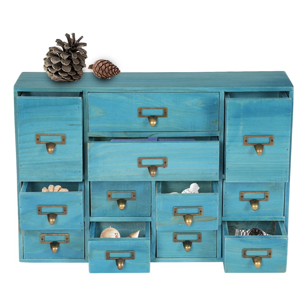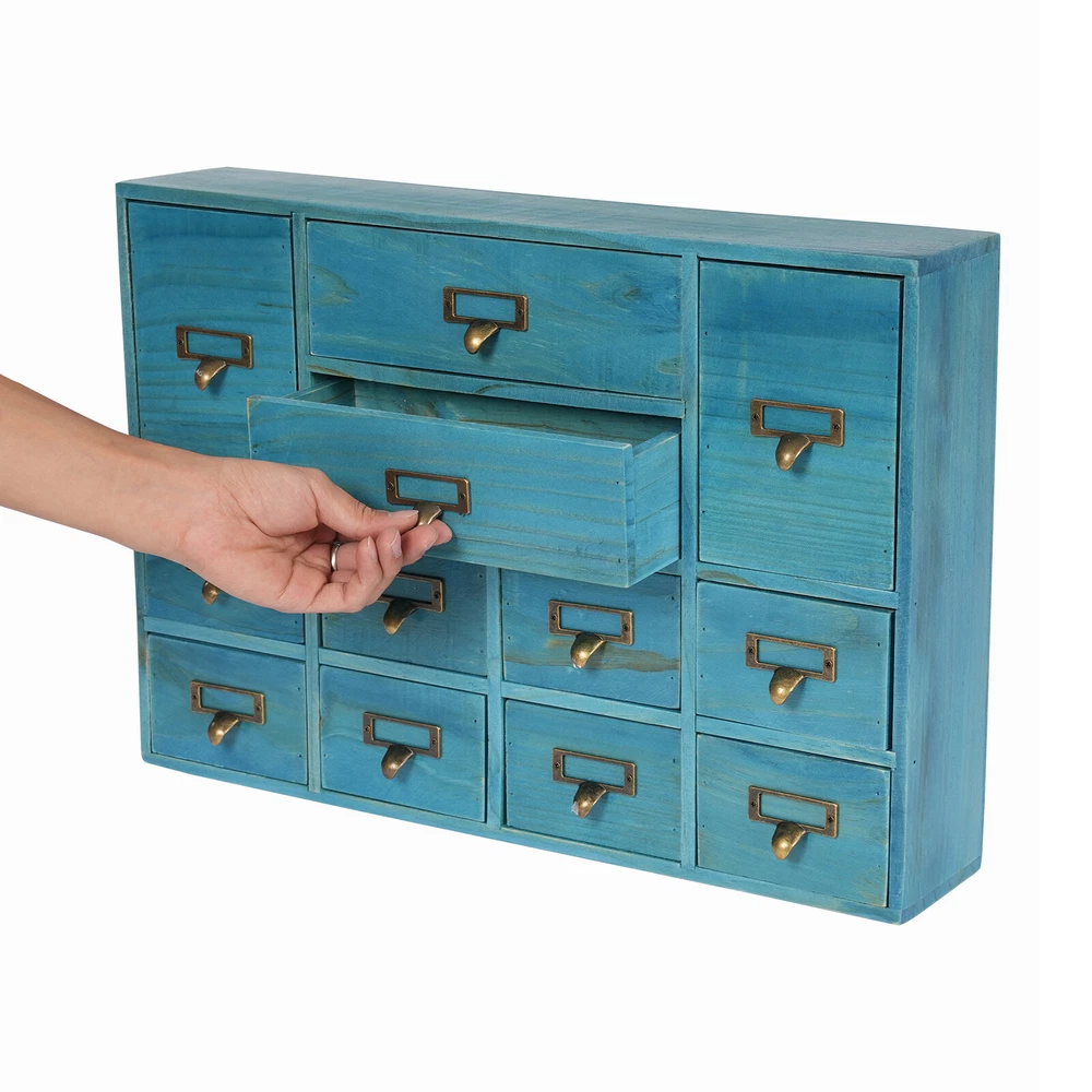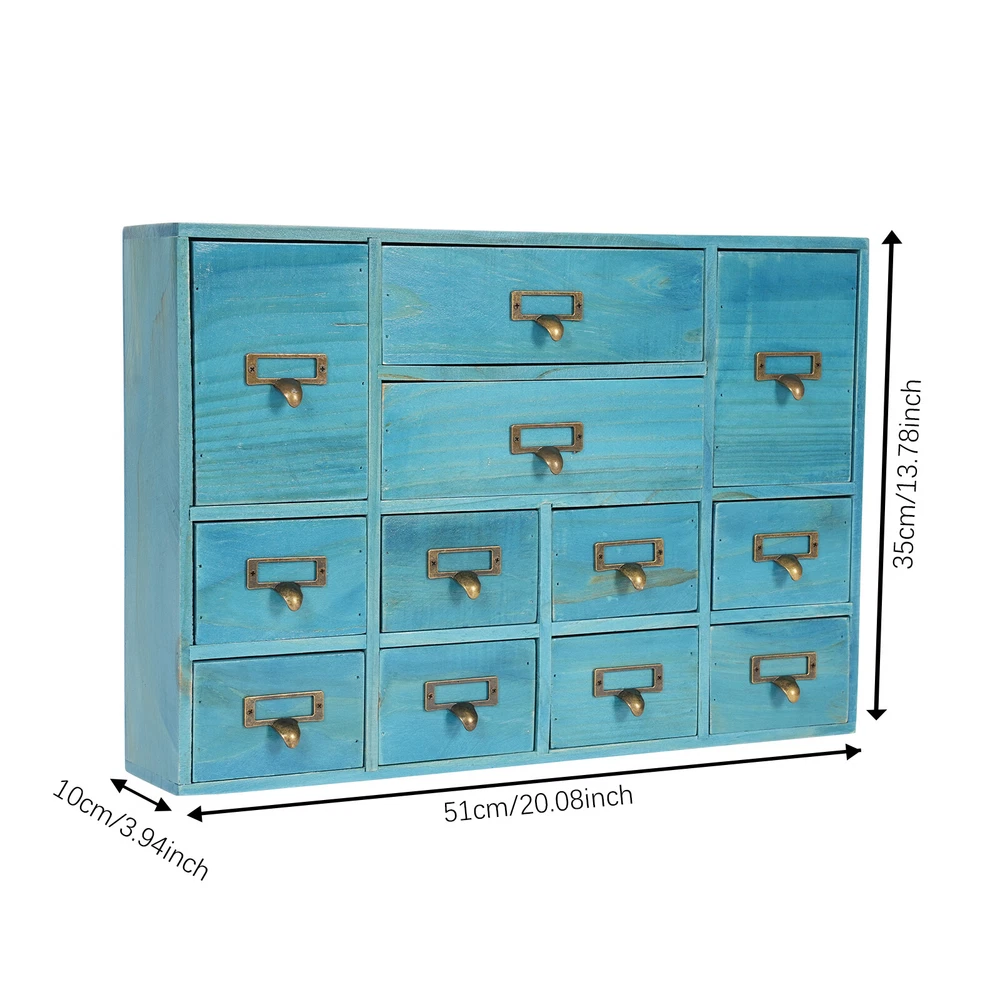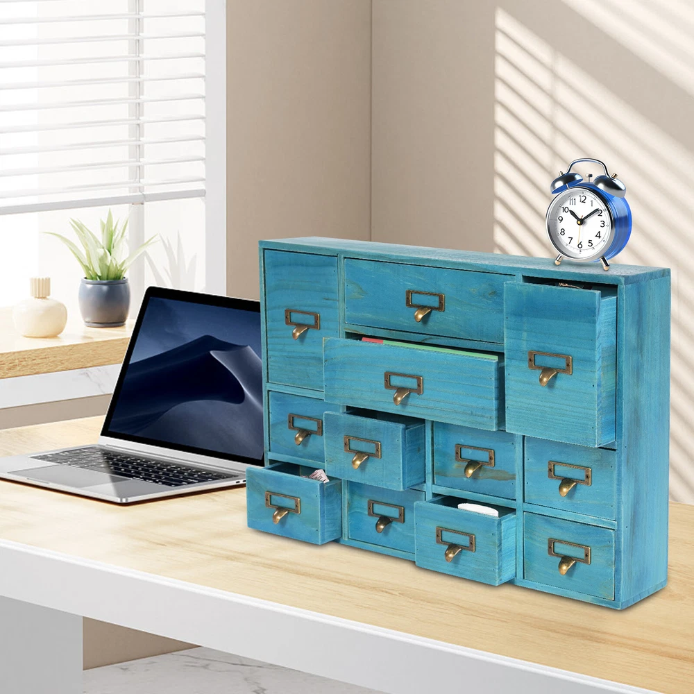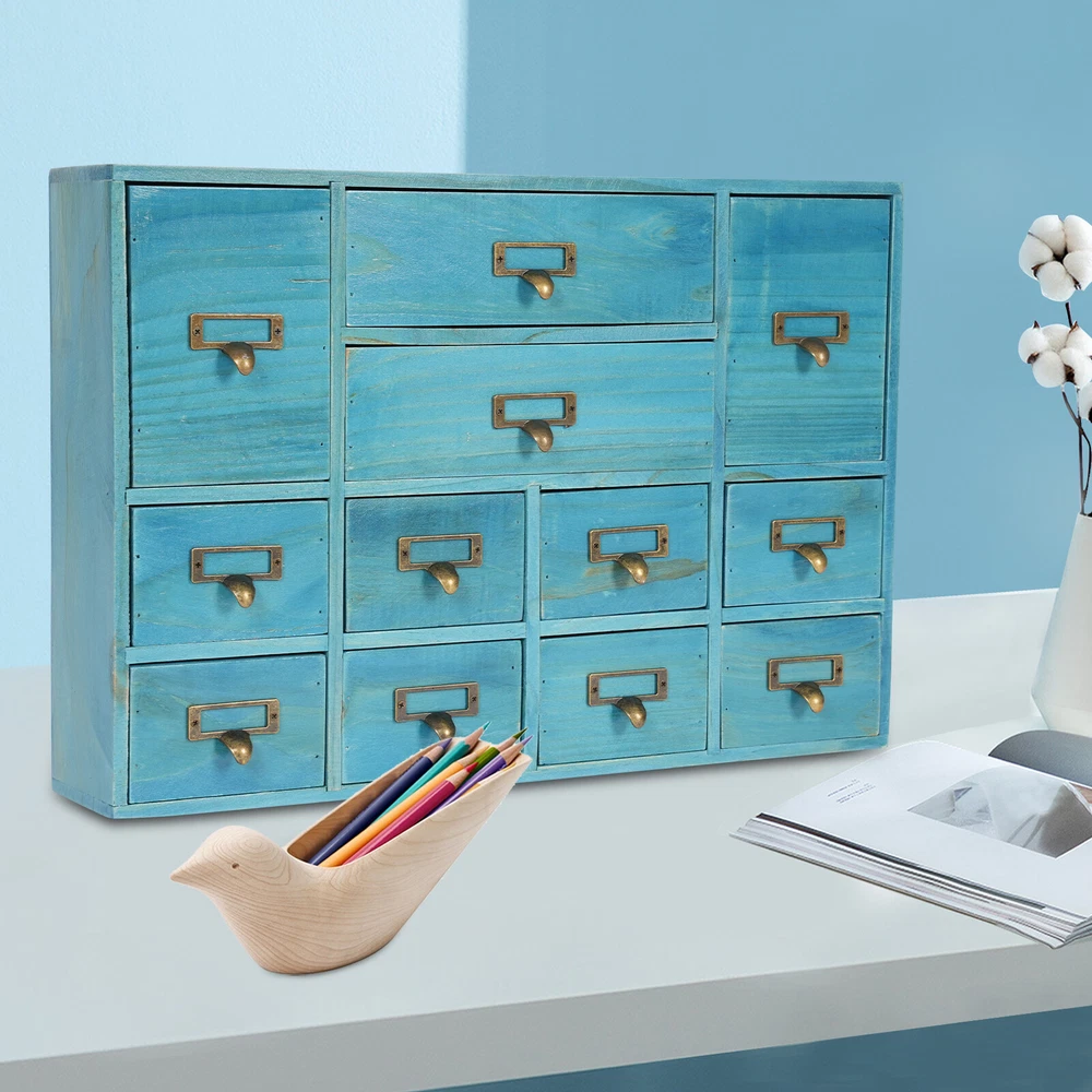 Specification Color: Blue Shape: Rectangular Mount Type: Tabletop Assembly Required: No Number of Drawers: 12 Material: Plywood, Pine Wood, Zinc Alloy Process: Spray Painting, Aging Indoor/Outdoor Usage: Indoor Load Capacity: 10kg/22.05lbs Package Size: 54*38*14cm/21.26*14.96*5.51in Product Size: 51*10*35cm/20.08*3.94*13.78in Gross Weight: 5kg/11.02lbs Net Weight: 4.5kg/9.92lbs Package Included 1* Desktop Drawer Organizer 12 Drawers Wooden Desktop Organizer Home Storage Case Cosmetic Dresser Box new Description Do you feel annoyed by too many cluttered and unorganized items on your desktop? Our desktop drawer organizer can help you solve this problem. This product is made of high-quality plywood, which is moisture-proof, sturdy, and durable. The 12 drawers are convenient for you to organize different daily items. Our product can effectively help you reduce the pressure on your countertop, which is an ideal choice for you. Key Features Selected Material: The premium plywood and pine wood with spraying painting and aging processes make this product durable, environmentally friendly, and rust-resistant , ensuring a long service life. Elegant Appearance: The classic look and natural wood grain can serve to decorate a room, and it can easily be incorporated into any décor to add a splash of color to a space. Save Space: Its compact size (20.08*3.94*13.78 inches) and 3-tier design make full use of tabletop and vertical space, and keep your room neat and clean. Categorized Storage: The product has 12 independent drawers and comes in three sizes, allowing you to store your items in different drawers according to their size and to be categorized and organized. In addition, the top can also be used to hold items, allowing you to maximize the use of your space. Ready to Go: You can use the product directly after receiving it without installation, which saves you a lot of time. Easy to Clean: Thanks to its simple structure and smooth surface, you can wipe the dirt from it with a soft cloth, which is convenient. Ideal Gift: Thanks to its practicality and beauty, you can give it to your friends as a holiday or housewarming gift! Buy with Confidence: We stand behind all our guests and look forward to assisting you with your purchase. It is our pleasure to answer your confusion and questions. The end of the story between us is not "we sell and you buy". Details Practical Handles: The zinc alloy handles are convenient for you to pull the drawer easily to get the needed items. Label Slot: It is convenient for you to label the outside of the different drawers so you can sort and search. Smooth Edge: The smooth edges not only add to the aesthetics of the product but also improve the safety of use. Application Our products are suitable for use in the home and office for storing documents, office supplies, books, jewelry, remote controls, keys, stationery, diaries and other small items, medicines, jewelry, crafts, cosmetics, oils, office supplies, tea bags, coffee gear, essential oils, lipsticks, children's toys, blocks, pencils, erasers, notebooks, perfumes, nail polish, brushes, earphones, chargers, handicrafts, spare parts, needle and thread supplies, snacks, push pins, mail/receipts, tapes, etc, as well as for organizing cosmetics and other personal items. Specification Color: Blue Shape: Rectangular Mount Type: Tabletop Assembly Required: No Number of Drawers : 12 Material: Plywood, Pine Wood, Zinc Alloy Process: Spray Painting, Aging Indoor/Outdoor Usage: Indoor Load Capacity: 10kg/22.05lbs Package Size: 54*38*14cm/21.26*14.96*5.51in Product Size: 51*10*35cm/20.08*3.94*13.78in Gross Weight: 5kg/11.02lbs Net Weight: 4.5kg/9.92lbs Package Included 1* Desktop Drawer Organizer Notes Please note that other objects are not included except the drawer organizer. Please check the size carefully before ordering. Please allow the slight color difference caused by the shooting light and the 1-3 cm error due to manual measurement, and make sure you do not mind before ordering. Payment Delivery details Terms of sales About us Contact us Payment We accept ebay payment 。 Fees such as import duties, taxes are not included in the item price or shipping costs. These charges are the buyer's responsibility. Delivery details Shipping: 2-9 working days to: USA Terms of sales We maintain high standards of excellence and strive for hundred percent customer satisfaction. Feedback is very important to us. We hope that you contact us immediately before you give neutral or negative feedback, so that we can address your concerns. It is impossible to address issues if we do not know about them! About us Your satis faction is our ultimate goal. We work hard to earn your trust and future business. Our certified technicians have tested each item before shipping. The unit comes with 1 year limited warranty on all manufacturing defects. a) If you receive a defective item, you may return it or ask for a discount. Please contact us within 14 days after you receive the package. b) What you returned must be intact and in its original packaging as re? u. Customer is responsible for shipping costs of the returned item. c) We will cover the cost of shipping back t with the shipping rate indicated in the registration page. We will send you a new unit or refund the full payment you paid. Thank you. Contact us Business Hour Business Hour: Monday To Friday: 8:30 AM to 5:00 PM (Beijing China time) Due to time zones, our reply to your questions may not be immediately. But within above working time, we will reply your email within 24 hours. If it's non-workdays, please kindly be patient and wait till Monday. Please contact us with ebay message. Please feel free to contact us if you have any questions. Monday To Friday: 8:30 AM to 5:00 PM (Beijing China time) Due to time zones, our reply to your questions may not be immediately. But within above working time, we will reply your email within 24 hours. If it's non-workdays, please kindly be patient and