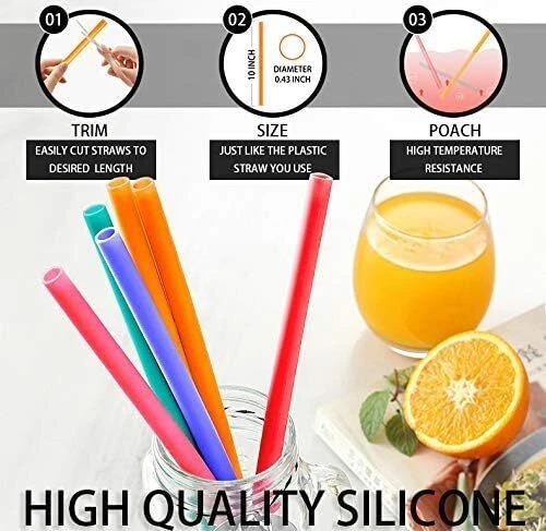 12 Pcs Eco Friendly Silicone Straws with 2 10 inch, Multicolor, Pure Color B Product Details Material: Silicone Color: Multicolor, Pure Color B Size: 10 inch Special Feature: Dishwasher Safe Brand: HT-INTL Unit Count: 1 Count Number of Items: 12 Manufacturer: HT-INTL Package Dimensions: 10 x 5.12 x 0.39 inches Item Weight: 3.84 ounces Country of Origin: China Item model number: 1 ULTIMATE VALUE STRAW SET-This set includes 12 vibrant, 10-inch silicone straws and 2 cleaning brushes, giving you everything you need for smoothies, milkshakes, cocktails, and more. Perfectly compatible with Yeti, Ozark, and Rtic Tumblers, it’s a versatile addition to your drinkware! PREMIUM QUALITY & ECO-FRIENDLY-Ditch the disposable straws and switch to these durable, reusable silicone straws made from high-quality, BPA-free, non-toxic materials. They’re safe, eco-friendly, and built to last, offering a healthier and more sustainable choice for you and the planet. PORTABLE & CONVENIENT-On the go? No problem! These straws are compact enough to fit in your bag or pocket for easy carrying and storage. Plus, we’ve included bonus cleaning brushes to keep them fresh and ready to use anytime, anywhere. PERFECT FOR ANY OCCASION-Whether it’s a family gathering, outdoor picnic, hiking trip, or even the office, these silicone straws are designed to meet all your needs. With a variety of colors, they’re practical, fun, and convenient for any occasion! VERSATILE FOR ANY HOT AND COLD DRINK-These silicone straws can handle everything from icy cold drinks to piping hot coffee, with a heat tolerance from -40℉ to 230℉. Safe, durable, and reusable—ditch the single-use straws and enjoy a worry-free, eco-friendly sip every time!