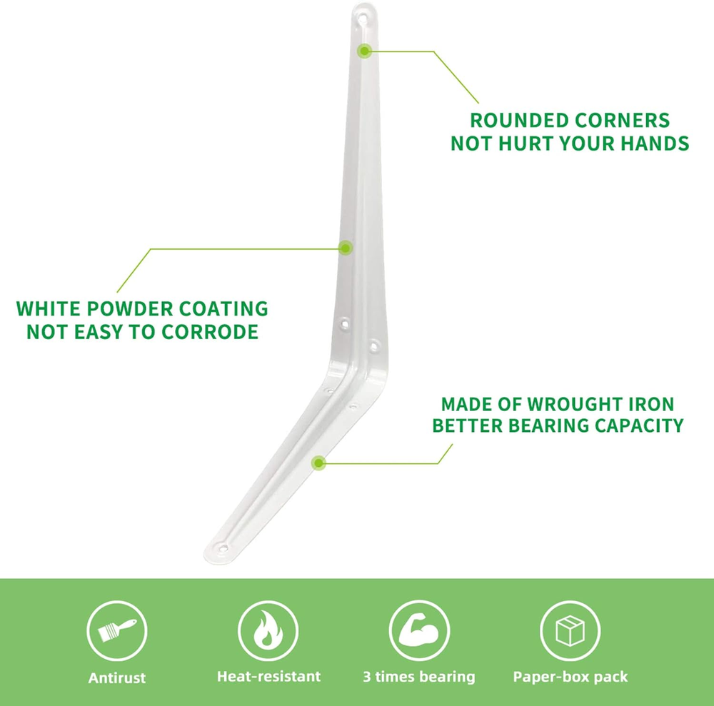 12-Pack White 12-Inch Heavy Duty L-Shaped Floating Shelf Brackets