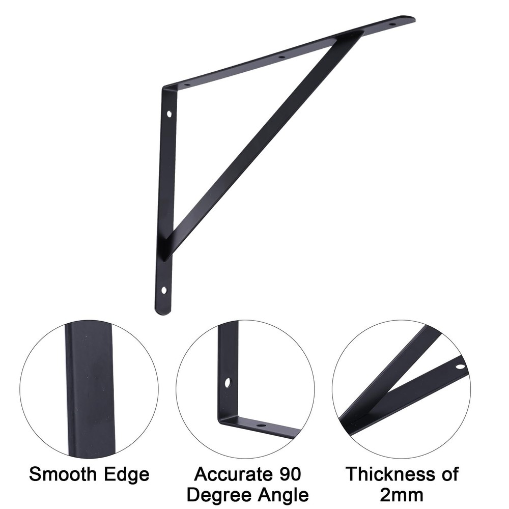 【12 Inches Shelf Brackets】: 6 Pack-12 x 8 inch shelf brackets,including Mounting Hardware.These brackets are designed to support shelves from 12 inches to 14 inches deep. 【Heavy Duty Shelf Brackets】:Our shelf bracktets are fabricated from exceptional steel, characterized by acceptable appulse attrition and no acrylic off. Widely acclimated in assorted apartment of the home, including garage, kitchen, laundry, backyard, etc. 【Rust-proof Coating】 Sturdy steel material with a black -coated finish is durable, chip- and corrosion-resistant. The smooth and rounded surface makes it easy to maintain. 【Easy to install】: The shelf brackets are easy to install, We offer regular screw and butterfly expansion tubes that can be installed on lime or plaster walls 【Quality Services】:We have high efficiency after-sales service. If you have any questions in the process of using, please feel free to us. Our team will help you solve the issues ASAP