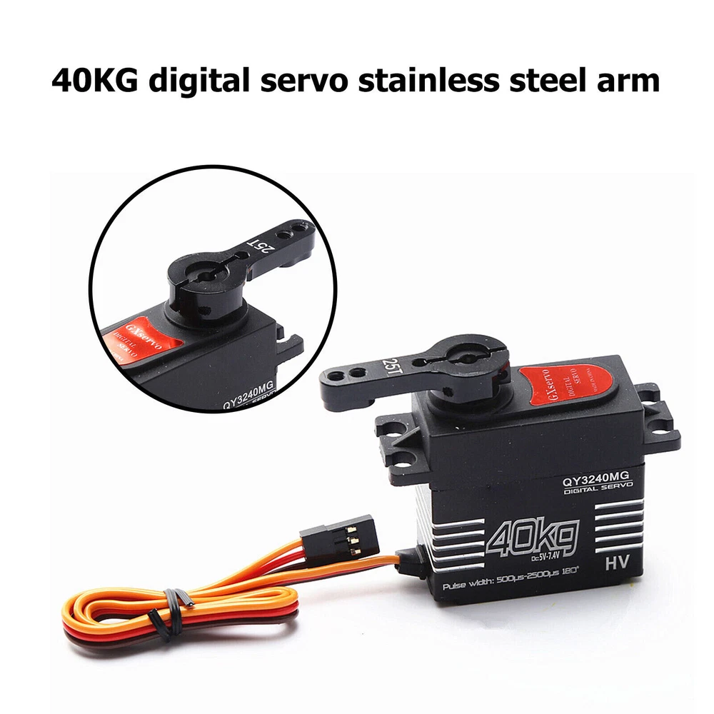 Features: Digital servo with excellent performance, suitable for remote control cars and robots. Precision gear, more wear-resistant, not easy to collapse and sweep teeth, etc. Including steering gear, steering gear accessories package, 25T metal steering gear arm. Specifications: Project: Digital Servo Pulse width: 500μs-2500μs=180° Running speed: (5V): 0.22sec60° Working speed: (6V) 0.21sec60° Running speed: (7.4V) 0.19sec60° Stall torque (5V): 31kg.cm Stall torque (6V): 35kg.cm Stall torque (7.4V): 40kg.cm Dead time: 3μs Ball bearing: 2BB Net Weight: 73g Wire length: 300mm Size: 20.2x40x40.5mm Operating frequency: 1520μs/330Hz Note: Due to the different monitor and light effect, the actual color of the item might be slightly different from the color showed on the pictures. Thank you! Please allow 1-2cm measuring deviation due to manual measurement. Package includes: 1 X 40KG Digital Servo 1 X 25T Servo Arm 1Set X Parts