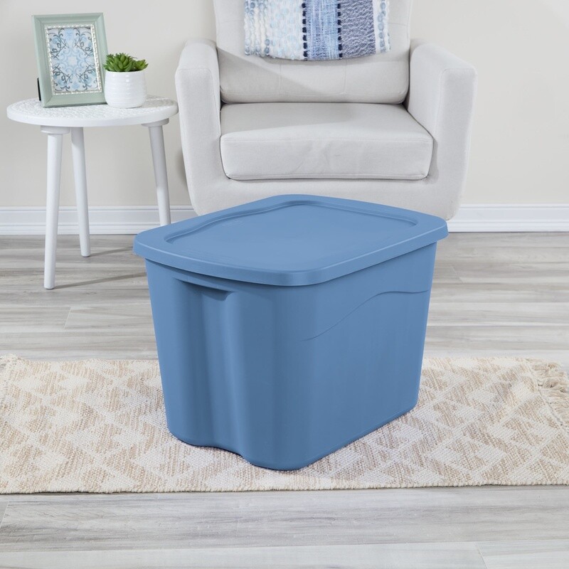 You may also like Metal Easel Floating Frame 5x7 Picture Display 7x9 Size Rectangle Holder New 20.1035 USD Free shipping Recycled Shipping Boxes 30 Count Eco-Friendly Corrugated Medium Large Items New 38.0 USD Free shipping Mid-Century Dining Chairs Set of 2 Upholstered Wood Armless Comfortable Cushion 168.99 USD Free shipping Mobile Under Desk Printer Stand Rolling Cart MDF 3 Storage Spaces Wheels Durable 49.9875 USD Free shipping Artificial Indoor Bamboo Tree W/ Plastic Planter Low Maintenance Home Decor New 26.3035 USD Free shipping Multifunctional Lift Top Coffee Table Wooden Storage Accent Table Living Room US 116.99 USD Free shipping Lawn Garden Tire 15X6 00-6 B Golf Cart 4 Ply Tread Traction Performance New 31.5875 USD Free shipping Anti-Microbial 6 Piece Bath Towel Set Cotton Plush Quick-Dry Soft Absorbent New 26.24 USD 27.62 USD Free shipping 5% off 2-Door Rattan Storage Cabinet Multiuse Organizer Bathroom Living Room Kitchen US 98.79 USD 103.99 USD Free shipping 5% off Olympic Bumper Plates 15 lbs Pair Vinyl Dumbbell Set 40 lbs Weight Training New 46.3 USD 48.74 USD Free shipping 5% off Full Motion TV Wall Mount Bracket 37-75 inch TVs 132lbs Adjustable Tilt Swivel 44.89 USD 47.25 USD Free shipping 5% off 11x17 Picture Frame Set of 6 Front Loading Wall Display Vertical Horizontal New 40.37 USD 42.49 USD Free shipping 5% off The Medium 18 Gallon Storage Bin with Lid is a popular sized plastic tote that lets you organize for less! Integrated handles allow you to carry the tote to where it needs to go, while the snap-on lid conceals contents and allows you to stack totes to save space. This popular sized tote can help contain clutter and bring order to closets, bedrooms, and dorms. Classic styling and value make this perfect for your basic household storage needs. Note: Use good judgment when storing items, don’t overload, keep heaviest bin at bottom, and don’t stack too high. The overall assembled dimensions of this item are 22 5/8" L x 17 1/4" W x 15 1/2" H. Medium Tote, 18 Gallon Plastic Storage Bin with Snap-on Lid, Light Blue, 8 Count Outside Dimensions: 22 5/8" x 17 1/4" x 15 1/2" Interior Dimensions at bottom: 17" x 13" x 15" Snap-on lids conceal contents and are recessed to allow for stacking Integrated handles for lifting and carrying Home organization at a value, ideal for bedrooms, closets and dorm rooms Use good judgment when stacking items, keep heaviest bin at the bottom BPA-free and phthalate-free Cordless Vinyl Room Darkening Mini Blinds 1 Inch Child Safe Heat Resistant New 23.51 USD 24.75 USD Free shipping 5% off Enamel on Steel Water Bath Canner W/ Lid Jar Rack Food Preserving Cooker New 29.65 USD 31.21 USD Free shipping 5% off Over-The-Door Shoe Organizer Rack 36 Pairs 12-Tier Metal Storage Solution New 39.15 USD 41.21 USD Free shipping 5% off Feeding Booster Seat Adjustable Height Swing Tray Toddler 3 Point Harness New 24.92 USD 26.23 USD Free shipping 5% off Anti-Microbial 6 Piece Bath Towel Set Cotton Plush Quick-Dry Soft Absorbent New 26.24 USD 27.62 USD Free shipping 5% off Recycled Shipping Boxes 30 Count Medium Size Eco Friendly Packing Supplies New 24.89 USD 26.2 USD Free shipping 5% off Pioneer Woman 4 Piece Salad Plates Set Vitrelle Dishwasher Microwave Oven Safe 27.26 USD 28.7 USD Free shipping 5% off Portable Dog Crate X-Small Plastic Kennel Pets Up to 10lbs Travel Safe New 29.4 USD 30.95 USD Free shipping 5% off 10-Speed Countertop Blender Glass Jar Dishwasher Safe Stainless Steel Blade New 42.6 USD 44.84 USD Free shipping 5% off 13 Gallon Roll Top Wastebasket Easy Clean Plastic Kitchen Garbage Bin Indoor Use 24.98 USD 26.29 USD Free shipping 5% off 9ft Half Patio Umbrella Outdoor Shade W/ Easy Crank Durable Steel Ribs New 42.75 USD 45.0 USD Free shipping 5% off 11x17 Picture Frame Set of 6 Front Loading Wall Display Vertical Horizontal New 40.37 USD 42.49 USD Free shipping 5% off