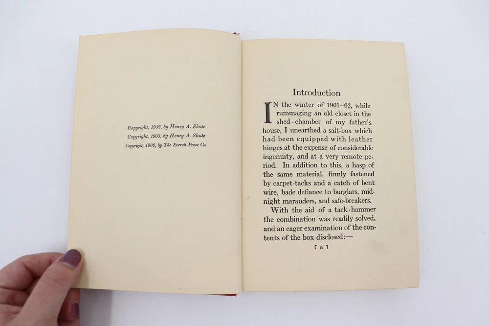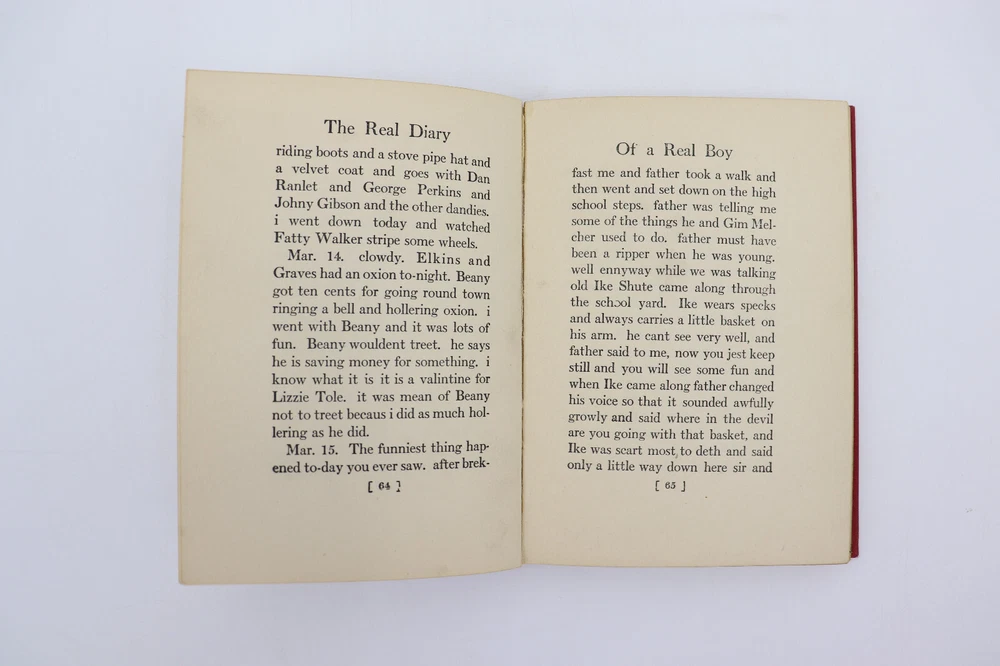 The Real Diary of a Real Boy by Henry A Schute. This book was published in 1906 and has a red hardback cover. The book was meant to be read by children, but people of every age can enjoy it! Great to read or to use for decoration. In good vintage condition. Shows signs of wear from age and use, such as discoloration, scratches, folds, staining, writing or other markings. The book measures 7.75" x 5.25". Message me with any questions!