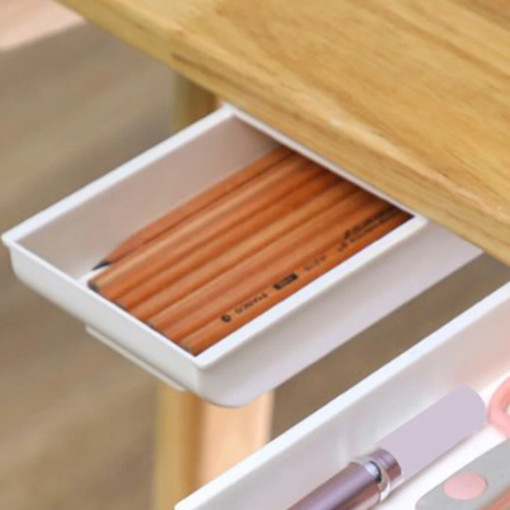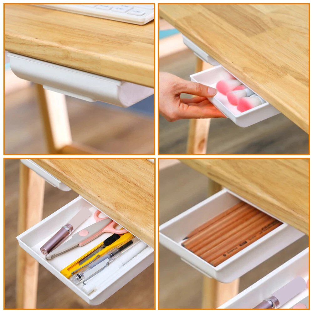 2 Pcs Under Cabinet Slide Out Desk Organizer for Stationery Concealment