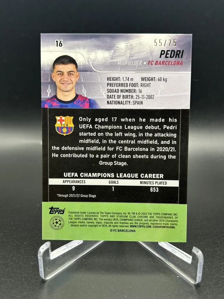 Parallel/Variety: Prism Refractor Player/Athlete: Pedri League: UEFA Champions League Manufacturer: Topps Set: 2021-22 Topps Stadium Club Chrome UCL Team: FC Barcelona, Spain Type: Sports Trading Card Season: 2021-22 Sport: Soccer Features: Short Print, Serial Numbered, Parallel/Variety