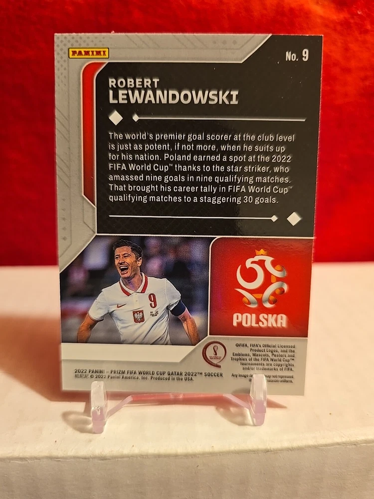 Team: Poland Set: 2022 Panini Prizm World Cup Qatar Type: Sports Trading Card Season: 2022 Card Number: 9 League: Fifa Features: Insert Insert Set: Scorers Club Manufacturer: Panini Sport: Soccer Player/Athlete: Robert Lewandowski