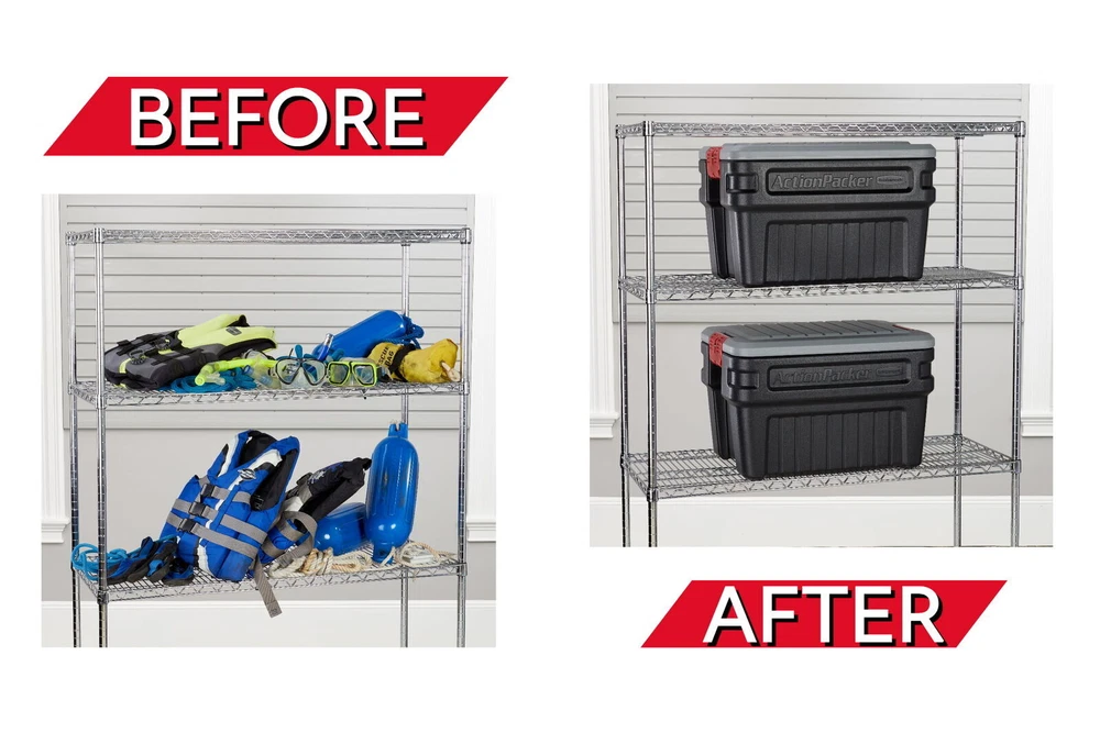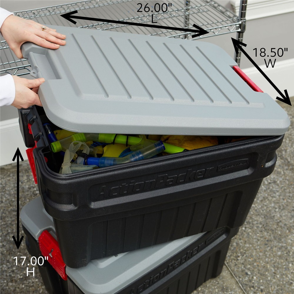 3-in-1 Corded Upright/Handheld Floor Carpet Vacuum Cleaner Cleaning Household 26.31 USD 28.6 USD Free shipping 8% off 3-Compartment Stainless Steel Kitchen Trash and Recycling Bin 16 gal Trash Cans 71.73 USD 77.96 USD Free shipping 8% off Bagless Upright Vacuum Cleaners Corded Electric Tile Carpet Hardwood Cleaning 67.85 USD 73.75 USD Free shipping 8% off 74" Tall 5 Tier Plastic Garage Shelves Storage Shelving 750 Lbs Capacity Racks 57.37 USD 62.36 USD Free shipping 8% off Rain Train 13,500 Square Feet Cast Iron Traveling Sprinkler Auto Shut-off Ramp 93.6 USD 100.64 USD Free shipping 7% off 5-Amp 8-Inch Variable Speed Bench Grinder with Flexible Work Light Benchtop New 160.44 USD 174.39 USD Free shipping 8% off Power Force Compact Bagless Vacuum Upright Vacuums Cleaning Floor Care Cleaners 56.63 USD 61.55 USD Free shipping 8% off Collapsible Rolling Miter Saw Stand W/ 3 Outlets & Quick-Release Brackets New 137.15 USD 149.08 USD Free shipping 8% off 1.1 Cu ft Upright Freezer Adjustable Temperature Control Energy Efficient New 133.4 USD 145.0 USD Free shipping 8% off 21pcs Ball Joint Press Tool Set Automotive Repair Kit Heavy Duty Carbon Steel US 75.89 USD 82.49 USD Free shipping 8% off Mallard Floaters Decoy 12 Pack Rugged One-piece Design 107.63 USD 116.99 USD Free shipping 8% off Liquid Plant Vitamin Solution Root Development Mineral Supplement 1 Gal New 160.6 USD 173.23 USD Free shipping 7% off The Rubbermaid 24 Gallon ActionPacker Storage Bin is tough and can withstand everyday usage. This heavy duty storage tote is made of impact resistant material and can withstand temperatures of 0-100 F. Featuring a double-walled lid, this storage bin will keep all contents safe and dry and is designed to prevent water from pooling on the lid top. This container also is designed to accommodate a lock, adding extra security to your contents. This storage container provides a storage solution for anything whether it be sports equipment, camping supplies, or even a tool chest. Rubbermaid 24 Gallon ActionPacker Storage Bin, Heavy Duty, Lockable, Black, Included Lid Black base with grey lid and red handles Stackable Outside dimensions: 26.000 in. L x 18.500 in. W x 17.000 in. H Inner dimensions: 20.000 in. L x 14.500 in. W x 15.000 in. H 24 Gallon / 90.8 Liter load capacity, 50 pounds Tape Measure Grip Release Autolock & Self Lock 25-Foot Precise Measurements 16.19 USD 17.41 USD Free shipping 7% off Bulk 576 Pre-sharpened HB Pencils Hexagonal Shape Soft Erasers Classroom Office 47.83 USD 51.99 USD Free shipping 8% off 16pc Dinnerware Set Service 4 Stoneware Microwave Safe Unique Design Kitchen 83.71 USD 90.99 USD Free shipping 8% off Powerful Bagless Upright Carpet Floor Airspeed Ultra-Lightweight Vacuum Cleaner 112.77 USD 121.26 USD Free shipping 7% off Kids Table and Chair Set 3 in 1 Children Activity Table with Storage Drawer 83.71 USD 90.99 USD Free shipping 8% off Memory Foam Seat Cushion Pillow Ergonomic Back Pain Relief Office Car Wheelchair 57.28 USD 62.26 USD Free shipping 8% off 21 Pcs Tea Party Set Ceramic Teapot Cup Stand 3 Tier Cake Holder Elegant New 69.36 USD 75.39 USD Free shipping 8% off Wardrobe Storage Box 3 Pack Heavy Duty W/ Metal Bars Reinforced Handles New 84.78 USD 92.16 USD Free shipping 8% off Tumbler Glasses Set of 12 Iconic Heavy Base Tall Cocktail Glasses 16-Ounce New 46.58 USD 50.64 USD Free shipping 8% off Cast Iron Skillet Pre-Seasoned W/ Silicone Hot Handle Holder Ideal Cooking New 47.72 USD 51.87 USD Free shipping 8% off 1000ct 16oz Plastic Cups Clear Disposable Cold Drinks Iced Coffee Smoothies New 74.14 USD 80.59 USD Free shipping 8% off Laminator 13 Inch 5 in 1 Cold Thermal Machine W/ 50 Sheets Cutter Rounder New 71.75 USD 77.99 USD Free shipping 8% off
