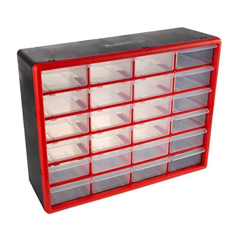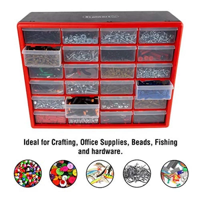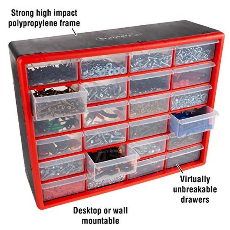 You may also like 14 Qt Aluminum Fry Pot W/Lid Perforated Basket Heavy Duty Handles Frying Cooking 73.79 USD 77.67 USD Free shipping 5% off Swivel TV Stand W/ Mount Power Outlet LED Lights Corner Design Media Console New 98.78 USD 103.98 USD Free shipping 5% off Jute Area Rug Hand Woven Natural Fiber Durable Bedroom Living Room Office New 60.0 USD 63.16 USD Free shipping 5% off Undersink Trash Can 7 Gallon No Skid Rubber Base Stainless Steel Utility Silver 44.44 USD 46.78 USD Free shipping 5% off Senior Horse Feed 50 LB ActivAge Prebiotic High-Fat Nugget Easy Chew Support New 72.73 USD 76.56 USD Free shipping 5% off TV Stand 55 in Flat Screen Storage Compartment Durable Compact Rectangular Grey 80.16 USD 84.38 USD Free shipping 5% off Outdoor Nativity Scene Weatherproof Christmas Decor Holy Family Display Yard New 89.16 USD 93.85 USD Free shipping 5% off 30L Dual Bin Soft-Close Trash Can W/ Foot Pedal Stainless Steel Indoor Rectangle 70.1 USD 73.79 USD Free shipping 5% off Hanson Rectangular TV Stand for TV's Up To 75 in 4 Door Living Room Black Grain 239.1 USD 251.68 USD Free shipping 5% off Heavy Duty Garage Ceiling Storage Rack Adjustable Overhead Bin Organizer New 128.42 USD 135.18 USD Free shipping 5% off Solid Wood Farmhouse Dining Table Large Rustic Kitchen Table Easy Assembly New 395.18 USD 415.98 USD Free shipping 5% off Two Door Portable Dog Crate Air Transport Easy Clean Hold 50 Lbs Pets Medium New 175.98 USD 185.24 USD Free shipping 5% off About this item STORAGE ORGANIZER - Composed of durable polypropylene, these storage bins with drawers are made to last and difficult to damage, and the clear plastic drawers make it simple to see what you need and have finger grip drawer pulls for easy opening. DESKTOP AND WALL MOUNTABLE - The garage storage cabinet is portable and can sit on any desk, table, and work surface, while its sturdy plastic frame features keyholes on the back for convenient wall mounting in a closet, classroom, workshop, and shed. MULTI-PURPOSE - With 24 compartments housed in a frame, this organization and storage cabinet is ideal for holding many types of items, including fishing tackle, office supplies, nuts, screws, and bolts, crafting materials, beads, makeup, and jewelry. VERSATILE - These plastic storage drawers are perfect for any area of the house, including your garage, office, kitchen, bathroom, and bedroom, and it's also a great way to organize and contain small children's toys, like small plastic blocks and figures. PRODUCT DETAILS - Materials: Polypropylene. Dimensions: (L) 20" x (W) 8. 25" x (H) 15. 5"; Each Drawer: (L) 4. 5" x (W) 6" x (H) 2. 25". 24 Total Drawers. Color: Red. › product details Color Red Material Plastic Frame Material Plastic Brand Stalwart Product Dimensions 8. 25"D x 20"W x 15. 5"H You may also like Indoor Hydroponic Grow Tent 24x24x48 Reflective Mylar W/ Observation Window New 40.49 USD 42.62 USD Free shipping 5% off Decorative Wall Mount Hose Reel Garden Guide Holds 125ft Hose Aluminum Bronze US 176.76 USD 186.06 USD Free shipping 5% off Indoor Grow Tent 2x2 Hydroponics Reflective Mylar Double Viewing Door Easy Setup 37.52 USD 39.5 USD Free shipping 5% off 8 Drawer Rolling Tool Chest Organizer on Wheels Portable Lockable Garage Storage 356.12 USD 374.86 USD Free shipping 5% off 4 Pcs Concrete Post Anchor U Shape Fence Post Holder Rectangular Stability Black 36.54 USD 38.46 USD Free shipping 5% off Foldable Aluminum Beach Trolley W/ 12inch Puncture Proof Wheels Heavy Duty New 96.25 USD 101.32 USD Free shipping 5% off 2000D Mylar Grow Tent 24x24 in Indoor Plant Growing Easy Assembly Heavy Duty New 49.38 USD 51.98 USD Free shipping 5% off Insulated Compost Bin 113 Gallon No Turn BPA Free Vermin Resistant Year Round US 366.75 USD 386.05 USD Free shipping 5% off 2x2 ft Mylar Grow Tent Light Proof Easy Access Removable Floor Tray Indoor Use 52.35 USD 55.1 USD Free shipping 5% off Plant Covers Freeze Protection Frost Cloth 10x100 Ft Garden Blanket Row Cover US 35.55 USD 37.42 USD Free shipping 5% off Stackable Storage System 3 Compartments Toolbox Rolling Tote Quick Access Black 119.53 USD 125.82 USD Free shipping 5% off 20 Pack Seed Starter Trays 72 Cell Hydroponics Indoor Outdoor Gardening Plastic 41.48 USD 43.66 USD Free shipping 5% off