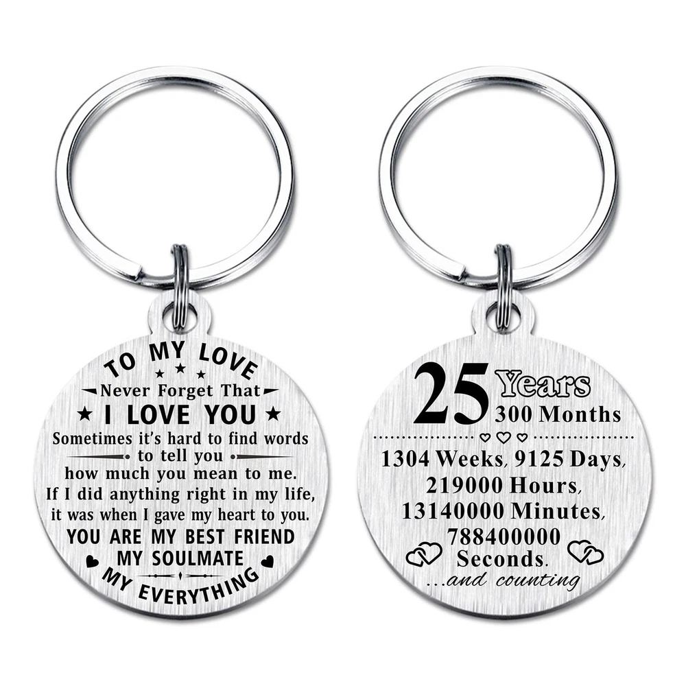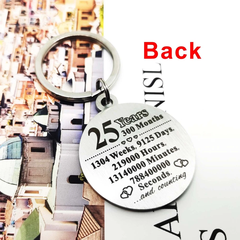 25th Anniversary Keychain Gifts, Steel Engraved 25 Year Anniversary Decoratio...