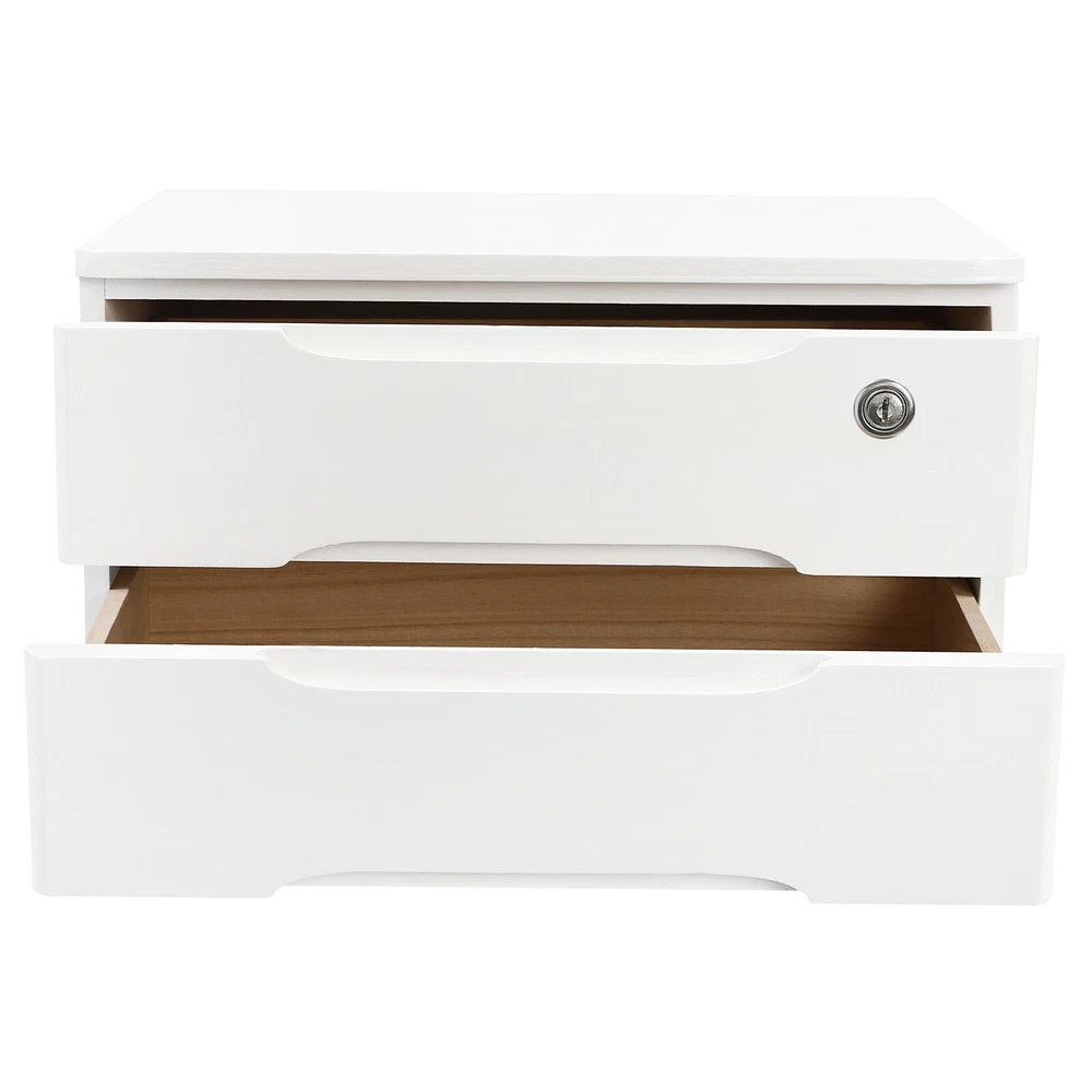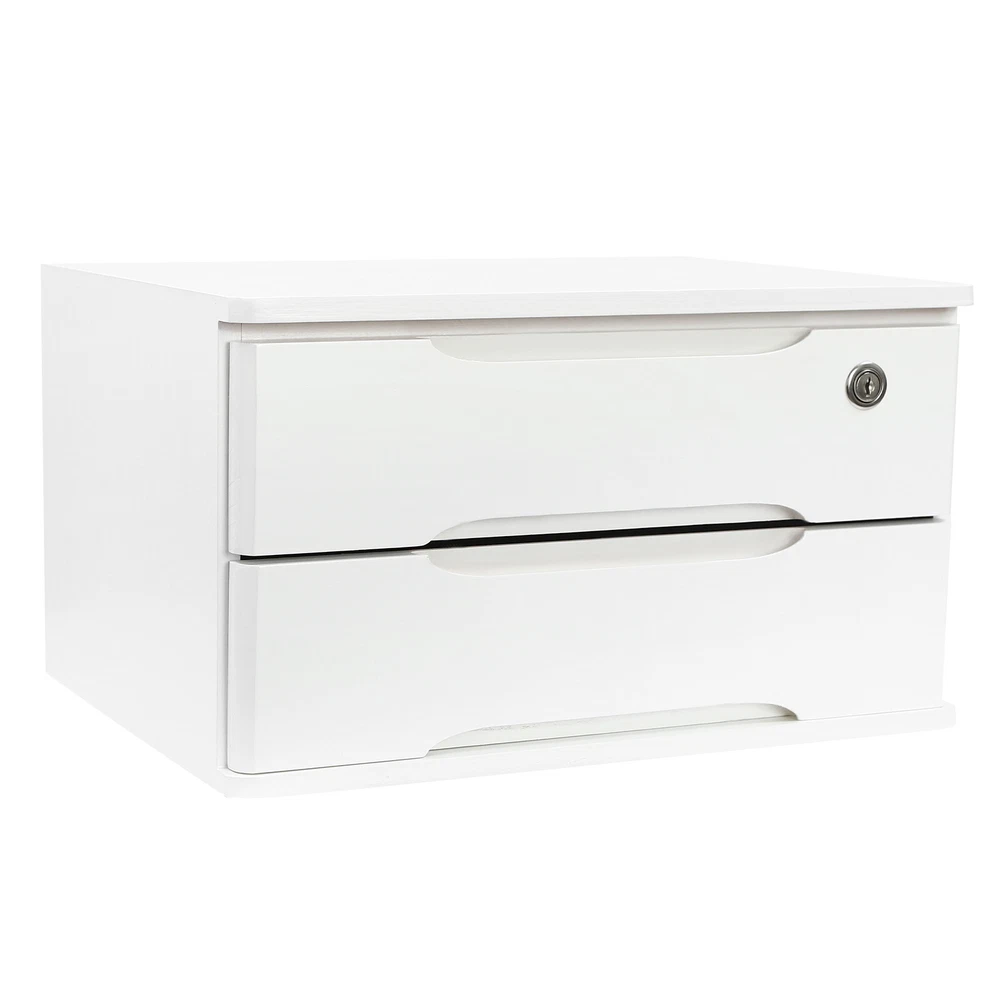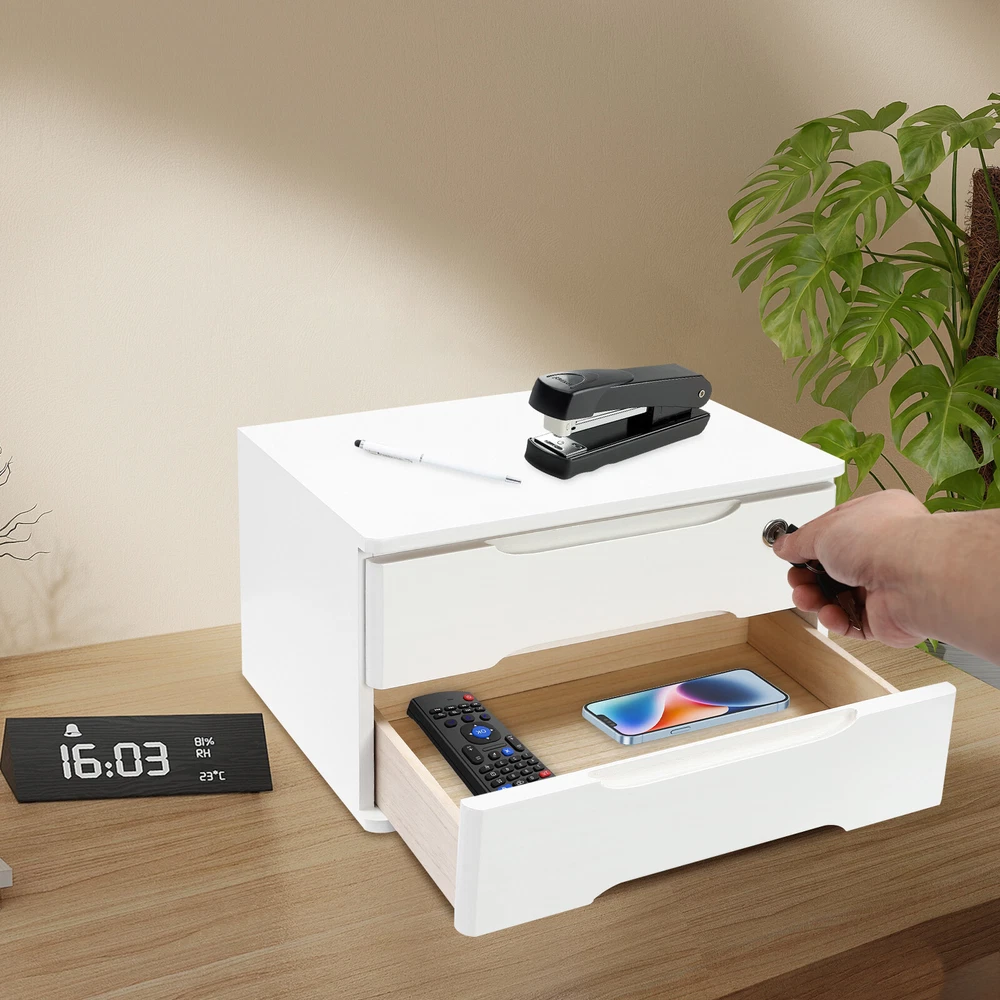 2-Tier Wooden Desktop Storage Box with Lockable Drawers, Desk Organizer Description Do you feel annoyed by too many items on your desktop that are cluttered and unorganized? Our 2-tier organizer can help you solve this problem. This product is made of high-quality material, which ensures a long service life. The 2 drawers are convenient for you to organize different daily items, and the locking design effective ly protects your privacy. It can effectively help you reduce the pressure on your countertop, which is an ideal choice for you. Key Features Good Material: This product is made of high-quality tung wood with a spray painting process, which is hard, strong, anti-corrosion , not easy to deform, and has a long service life. Categorized Storage: The product has 2 drawers, so you can categorize and store your items in different drawers to give your desktop a neat look. In addition, the top can also be used to hold items, allowing you to maximize the use of your space. Protect Your Privacy: This product features the locking design that locks the drawer and can only be opened with the included key to protect your property. Strong Load-bearing Capacity: High-quality material and stable construction give the product a weight capacity of about 66.14 lbs , so you can store items on it with confidence. Save Space: This product is small in size ( 15.35*11.81*8.46 in ches) , fully utilizing vertical space, thereby reducing the burden on the countertop. Ready to Use: This product does not require assembly, and you can start using it once you receive it, saving the tedious installation process and making it more convenient. Effortless Cleaning: Thanks to the smooth surface and simple construction, you can easily wipe off the dirt on it with a soft cloth. Thoughtful Gift: This is an ideal gift for colleagues, friends, and family to help them organize their belongings and keep their desks tidy. Good Customer Service: We stand behind all our guests and look forward to assisting you with your purchase. It is our pleasure to answer your confusion and questions. The end of the story between us is not "we sell and you buy". Details Comfortable Handles: Each drawer has an ergonomic handle that is not only comfortable but also easy for you to pull the drawer. Smooth Edge: The rounded and smooth edges not only add to the aesthetics of the product but also improve the safety of use. Anti-slip Pad: It can keep the product stable and less likely to slip off while you use it. Application This product can be used in an office, study, bedroom, dresser, kitchen, etc. It is suitable for organizing documents, files, pens, notebooks, handy stickers, remote controls, staplers, cosmetics, greeting cards, tickets, business cards, stationery, jewelry, hair accessories, and so on. Specification Color: White Shape: Rectangle Style: Modern Material: Tung Wood Process: Spray Paint Assembly Required: No Number of Tiers: 2 Number of Locks: 1 Number of Keys: 2 Max. Load Capacity: About 30kg/ 66.14 lbs Gross Weight: 4kg/ 8.82 lbs Package Size: 45*33*27 cm/ 17.72*12.99*10.63 in Product Size: 39*30*21.5 cm/ 15.35*11.81*8.46 in Package Included 1* 2-Tier Organizer 2* Keys 4* Anti-slip Pads Notes Please allow the slight color difference caused by the shooting light and the 1-3 cm error due to manual measurement, and make sure you do not mind before ordering. Feature 1 Easy installation,Convenient Use,Easy Operation Brand Unbranded Color White Shape Rectangle Style Modern Material Tung Wood Process Spray Paint Assembly Required No Number of Tiers 2 Number of Locks 1 Number of Keys 2 Max. Load Capacity About 30kg/ 66.14 lbs Gross Weight 4kg/ 8.82 lbs Package Size 45*33*27 cm/ 17.72*12.99*10.63 in Product Size 39*30*21.5 cm/ 15.35*11.81*8.46 in Item Length 15.35in Item Width 11.81in Item Height 8.46in Type Desktop Storage Box Features Lockable Mounting Free Standing