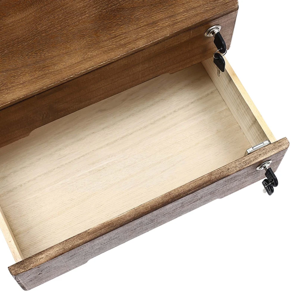 2-tiers Lockable Wooden Desktop Storage Box With Curved Handle+4 Keys For Office Description Cleanness and tidiness are a good attitude towards life and will put you and your family in a good mood, our desktop storage cabinet is made of high-quality material, has sufficient storage space, and has a beautiful and practical design, allowing you to neatly and efficiently organize your belongings and making you feel organized and relaxed. Say goodbye to a cluttered desk and enjoy a neater, more efficient life! Key Features Sturdy and Durable: It is made of high-quality wood with a painting treatment, which is eco-friendly, odorless, anti-corrosion, and rust-resistant , ensuring its beauty and long-time use. Excellent Organizer: This set of 2 drawers can sort and store data cables, kinds of files, and other daily essentials to create a cleaner, tidier office and home environment. Meanwhile, the top platform allows you to place some keys, plants, and chargers to make full use of your space. Minimalist Style: The walnut color scheme combines a rectangular shape and simple lines to create a minimalist aesthetic and reveal a strong rustic charm, adding a touch of refinement to your room. Thoughtful Design: The locking design ensures the security of your stored documents and comes with two pairs of keys for your convenience. Stable Construction: The thickened material and rectangular structure give it excellent stability, meeting your needs for storing various items without tipping o ver. Effortless Clean: Thanks to its smooth surface, simple construction, and clear texture, you can wipe it clean with a damp rag. Installation-free : What you receive will be an already assembled product, so you can use it directly, which is very convenient and time-saving. Ideal Gift: Thanks to its practicality, it will make a fine gift for family, friends, and loved ones on Christmas, Father's Day, Mother's Day, birthdays, anniversaries, and holidays. Details Rounded Edges: The rounded edges are burr-free , which is comfortable to touch a nd can care for your skin. Curved Handle: It helps you open and close the drawer conveniently while conforming to the design of the cabinet. Wood Rail: It is durable while ensuring smooth switching. Application It can be placed in the office, study, dresser, and more to store stamps, sticky notes, paper clips, scissors, bills, pens, pencils, business cards, notepads, cosmetic collections, toiletries, jewelry, hair accessories, crafts, etc. Specification Color: Walnut Material: Wood Finish: Painting Style: Compact Shape: Rectangular Assembly Required: No Product Care Instructions: Wipe with a Soft Cloth Recommended Uses For Product: Files Special Feature: Lockable Installation Type: Countertop Room Type: Home Office Door Style: Drawer, Lock Number of Tiers: 2 Each Drawer Size: 36*22*8cm/14.17*8.66*3.15in Product Size: 40*28*22cm/15.75*11*8.66in Package Size: 63*44.5*36.5cm/24.8*17.52*14.37in Gross Weight: 2.55kg/5.62lbs Net Weight: 2.3kg/5.07lbs Package Included 1* Desktop Storage Cabinet 4* Keys Notes Please note that the log product is subject to wood knots, scabs, mineral threads, etc., but it's normal. Please make sure that you do not mind before purchasing. Please note that this product does not include files and other storage items. Please place the product flat and try to avoid direct sunlight, and please do not put the furniture directly on the air conditioning or warm side, to avoid deformation and cracking of the furniture by moisture. Please allow the slight color difference caused by the shooting light and 1-3cm error due to manual measurement and make sure you do not mind before ordering. Payment Delivery details Terms of sales About us Contact us Payment We accept ebay payment 。 Fees such as import duties, taxes are not included in the item price or shipping costs. These charges are the buyer's responsibility. Delivery details Shipping: 2-9 working days to: USA Terms of sales We maintain high standards of excellence and strive for hundred percent customer satisfaction. Feedback is very important to us. We hope that you contact us immediately before you give neutral or negative feedback, so that we can address your concerns. It is impossible to address issues if we do not know about them! About us Your satis faction is our ultimate goal. We work hard to earn your trust and future business. Our certified technicians have tested each item before shipping. The unit comes with 1 year limited warranty on all manufacturing defects. a) If you receive a defective item, you may return it or ask for a discount. Please contact us within 14 days after you receive the package. b) What you returned must be intact and in its original packaging as re? u. Customer is responsible for shipping costs of the returned item. c) We will cover the cost of shipping back t with the shipping rate indicated in the registration page. We will send you a new unit or refund the full payment you paid. Thank you. Contact us Business Hour Business Hour: Monday To Friday: 8:30 AM to 5:00 PM (Beijing China time) Due to time zones, our reply to your questions may not be immediately. But within above working time, we will reply your email within 24 hours. If it's non-workdays, please kindly be patient and wait till Monday. Please contact us with ebay message. Please feel free to contact us if you have any questions. Monday To Friday: 8:30 AM to 5:00 PM (Beijing China time) Due to time zones, our reply to your questions may not be immediately. But within above working time, we will reply your email within 24 hours. If it's non-workdays, please kindly be patient and wait till Monday. Please contact us with ebay message. Please feel free to contact us if you have any questions. Brand Unbranded MPN N/A Type N/A Material Wood Assembly Required No Color Walnut Shape Rectangular Gross Weight 2.55kg/5.62lbs Net Weight 2.3kg/5.07lbs Package Size 63*44.5*36.5cm/24.8*17.52*14.37in Item Height 8.66in Item Length 15.7
