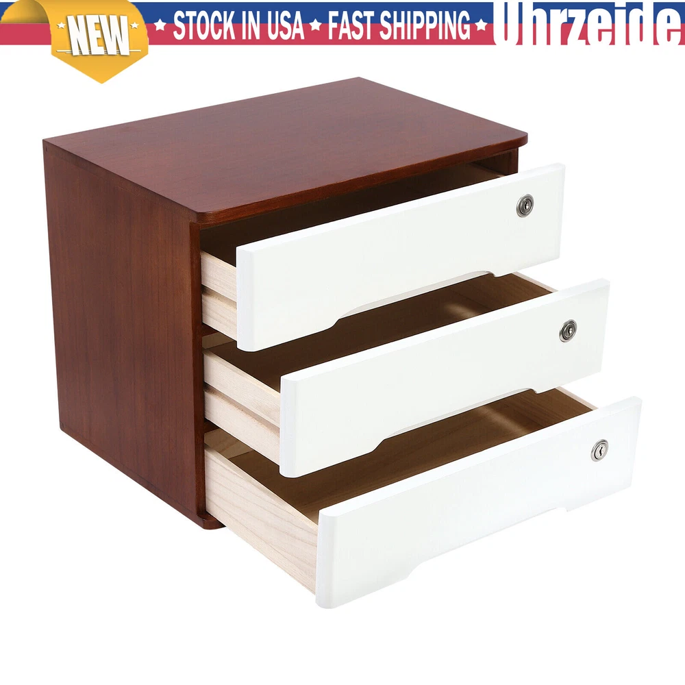 Specification Color: Walnut + White Shape: Rectangle Style: Modern Material: Tung Wood Process: Spray Paint Assembly Required: No Number of Tiers: 3 Number of Locks: 3 Number of Keys: 6 Max. Load Capacity: About 30kg/ 66.14 lbs Gross Weight: 5kg/ 11.02 lbs Package Size: 45*33*36 cm/ 17.72*12.99*14.17 in Product Size: 40*28*31 cm/ 15.75*11.02*12.2 in Package Included 1* 3-Tier Storage Cabinet 6* Keys 4* Anti-slip Pads Notes Please allow the slight color difference caused by the shooting light and the 1-3 cm error due to manual measurement, and make sure you do not mind before ordering. 3 Drawer Desktop File Cabinet Storage Filing Cabinet Lockable Office File Sorter Description Do you feel annoyed by too many items on your desktop that are cluttered and unorganized? Our 3-tier storage cabinet can help you solve this problem. This product is made of high-quality material, which ensures a long service life. The 3 drawers are convenient for you to organize different daily items, and the locking design effective ly protects your privacy. It can effectively help you reduce the pressure on your countertop, which is an ideal choice for you. Key Features Good Material: This product is made of high-quality tung wood with a spray painting process, which is hard, strong, anti-corrosion , not easy to deform, and has a long service life. Categorized Storage: The product has 3 drawers, so you can categorize and store your items in different drawers to give your desktop a neat look. In addition, the top can also be used to hold items, allowing you to maximize the use of your space. Protect Your Privacy: This product features the locking design that locks the drawer and can only be opened with the included key to protect your property. Strong Load-bearing Capacity: High-quality material and stable construction give the product a weight capacity of about 66.14 lbs , so you can store items on it with confidence. Save Space: This product is small in size ( 15.75*11.02*12.2 in) , fully utilizing vertical space, thereby reducing the burden on the countertop. Ready to Use: This product does not require assembly, and you can start using it once you receive it, saving the tedious installation process and making it more convenient. Effortless Cleaning: Thanks to the smooth surface and simple construction, you can easily wipe off the dirt on it with a soft cloth. Thoughtful Gift: This is an ideal gift for colleagues, friends, and family to help them organize their belongings and keep their desks tidy. Good Customer Service: We stand behind all our guests and look forward to assisting you with your purchase. It is our pleasure to answer your confusion and questions. The end of the story between us is not "we sell and you buy". Details Comfortable Handles: Each drawer has an ergonomic handle that is not only comfortable but also easy for you to pull the drawer. Smooth Edge: The rounded and smooth edges not only add to the aesthetics of the product but also improve the safety of use. Anti-slip Pad: It can keep the product stable and less likely to slip off while you use it. Application This product can be used in an office, study, bedroom, dresser, kitchen, etc. It is suitable for organizing documents, files, pens, notebooks, handy stickers, remote controls, staplers, cosmetics, greeting cards, tickets, business cards, stationery, jewelry, hair accessories, and so on. Specification Color: Walnut + White Shape: Rectangle Style: Modern Material: Tung Wood Process: Spray Paint Assembly Required: No Number of Tiers: 3 Number of Locks: 3 Number of Keys: 6 Max. Load Capacity: About 30kg/ 66.14 lbs Gross Weight: 5kg/ 11.02 lbs Package Size: 45*33*36 cm/ 17.72*12.99*14.17 in Product Size: 40*28*31 cm/ 15.75*11.02*12.2 in Package Included 1* 3-Tier Storage Cabinet 6* Keys 4* Anti-slip Pads Notes Please allow the slight color difference caused by the shooting light and the 1-3 cm error due to manual measurement, and make sure you do not mind before ordering. Payment Delivery details Terms of sales About us Contact us Payment We accept ebay payment 。 Fees such as import duties, taxes are not included in the item price or shipping costs. These charges are the buyer's responsibility. Delivery details Shipping: 2-9 working days to: USA Terms of sales We maintain high standards of excellence and strive for hundred percent customer satisfaction. Feedback is very important to us. We hope that you contact us immediately before you give neutral or negative feedback, so that we can address your concerns. It is impossible to address issues if we do not know about them! About us Your satis faction is our ultimate goal. We work hard to earn your trust and future business. Our certified technicians have tested each item before shipping. The unit comes with 1 year limited warranty on all manufacturing defects. a) If you receive a defective item, you may return it or ask for a discount. Please contact us within 14 days after you receive the package. b) What you returned must be intact and in its original packaging as re? u. Customer is responsible for shipping costs of the returned item. c) We will cover the cost of shipping back t with the shipping rate indicated in the registration page. We will send you a new unit or refund the full payment you paid. Thank you. Contact us Business Hour Business Hour: Monday To Friday: 8:30 AM to 5:00 PM (Beijing China time) Due to time zones, our reply to your questions may not be immediately. But within above working time, we will reply your email within 24 hours. If it's non-workdays, please kindly be patient and wait till Monday. Please contact us with ebay message. Please feel free to contact us if you have any questions. Monday To Friday: 8:30 AM to 5:00 PM (Beijing China time) Due to time zones, our reply to your questions may not be immediately. But within above working time, we will reply your email within 24 hours. If it's non-workdays, please kindly be patient and wait till Monday. Please contac
