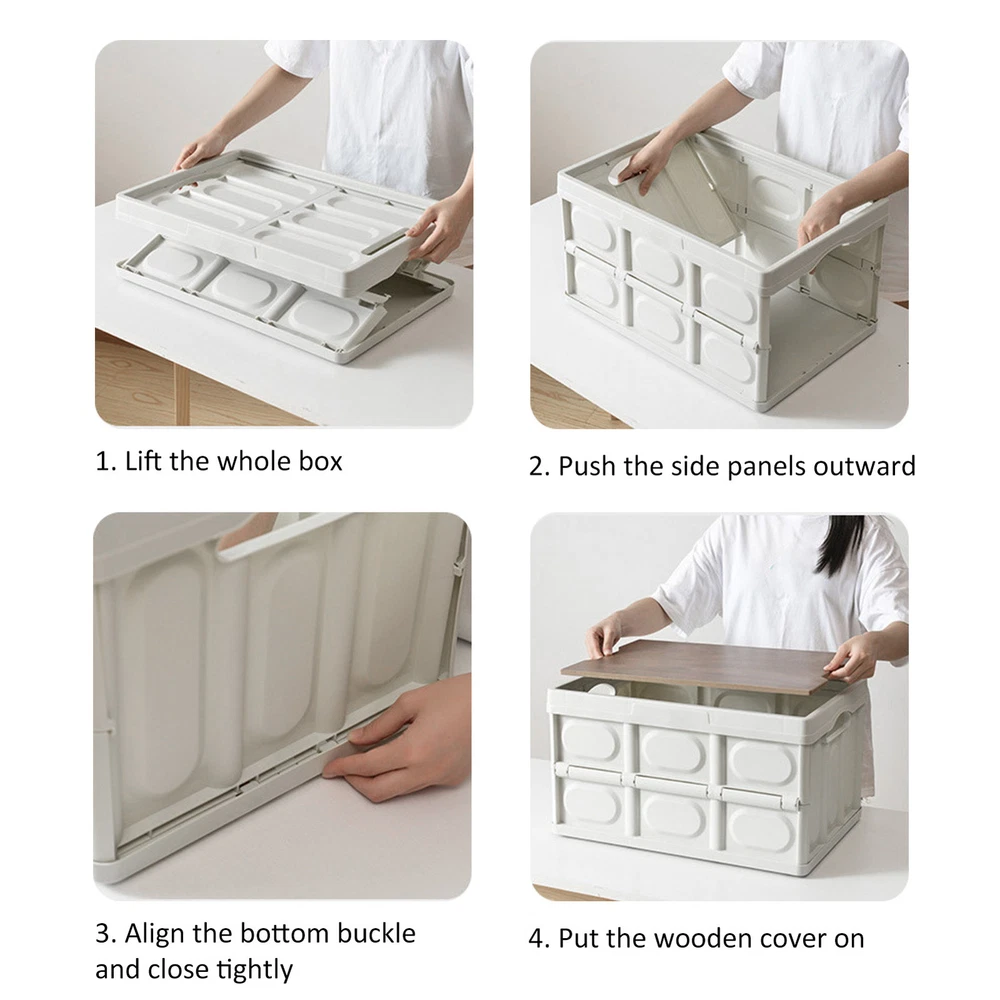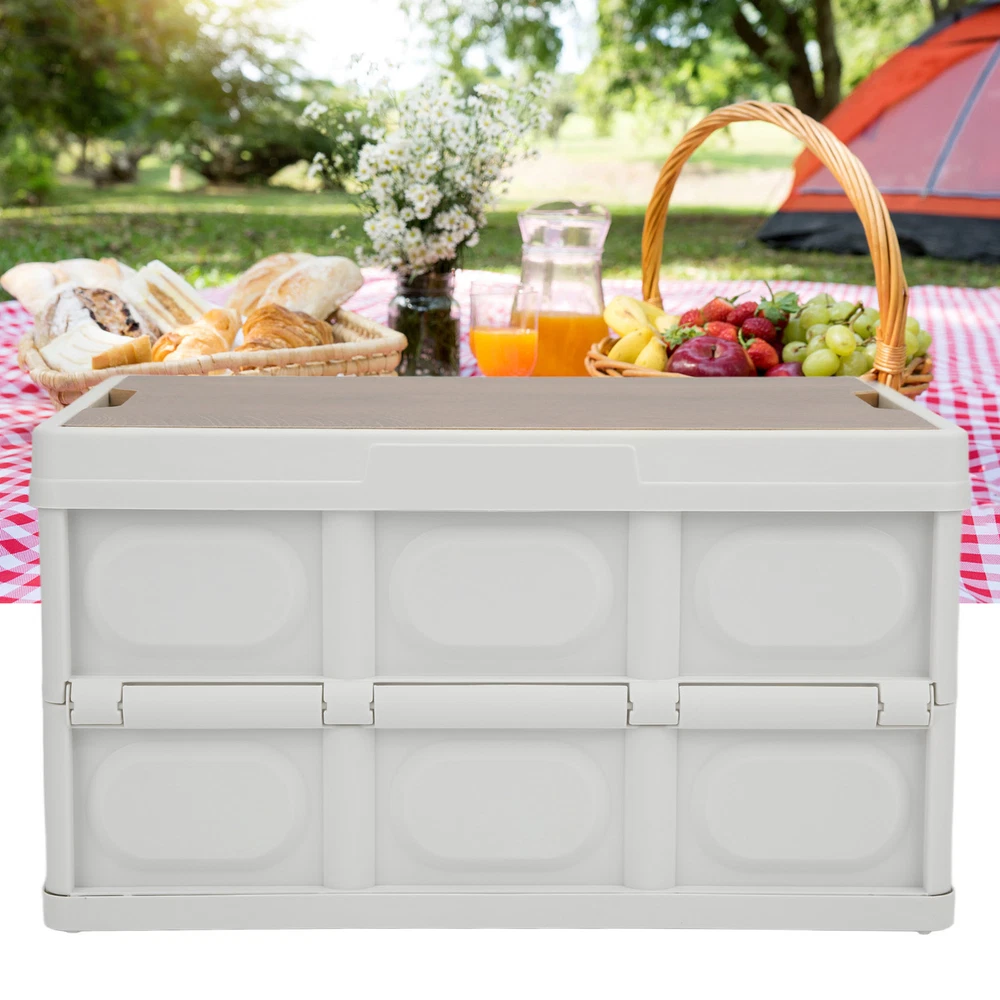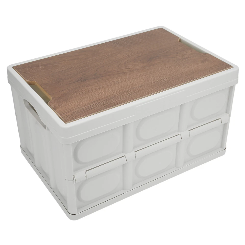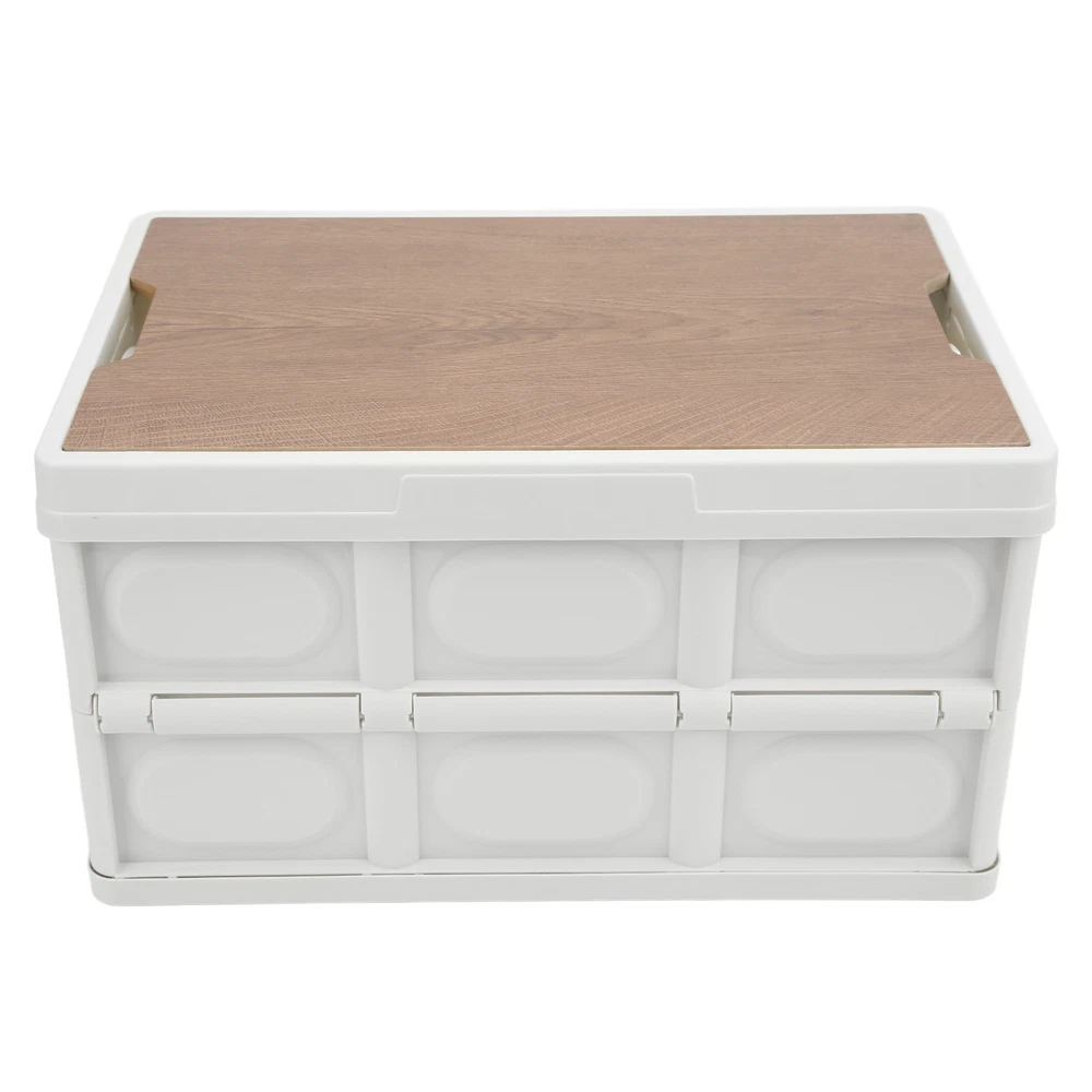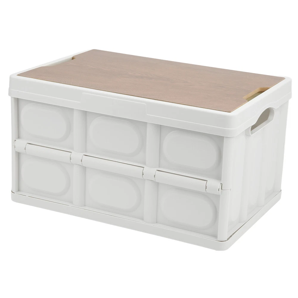 30L White Thickened Portable Outdoor Folding Storage Box with Removable Lid