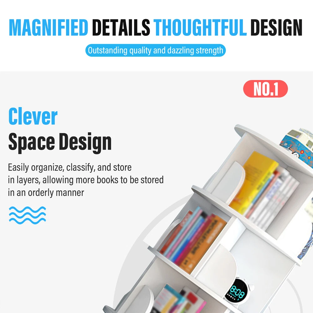 Rotating Bookshelf 360 Display 4 Tier Floor Standing Bookcase Storage Rack