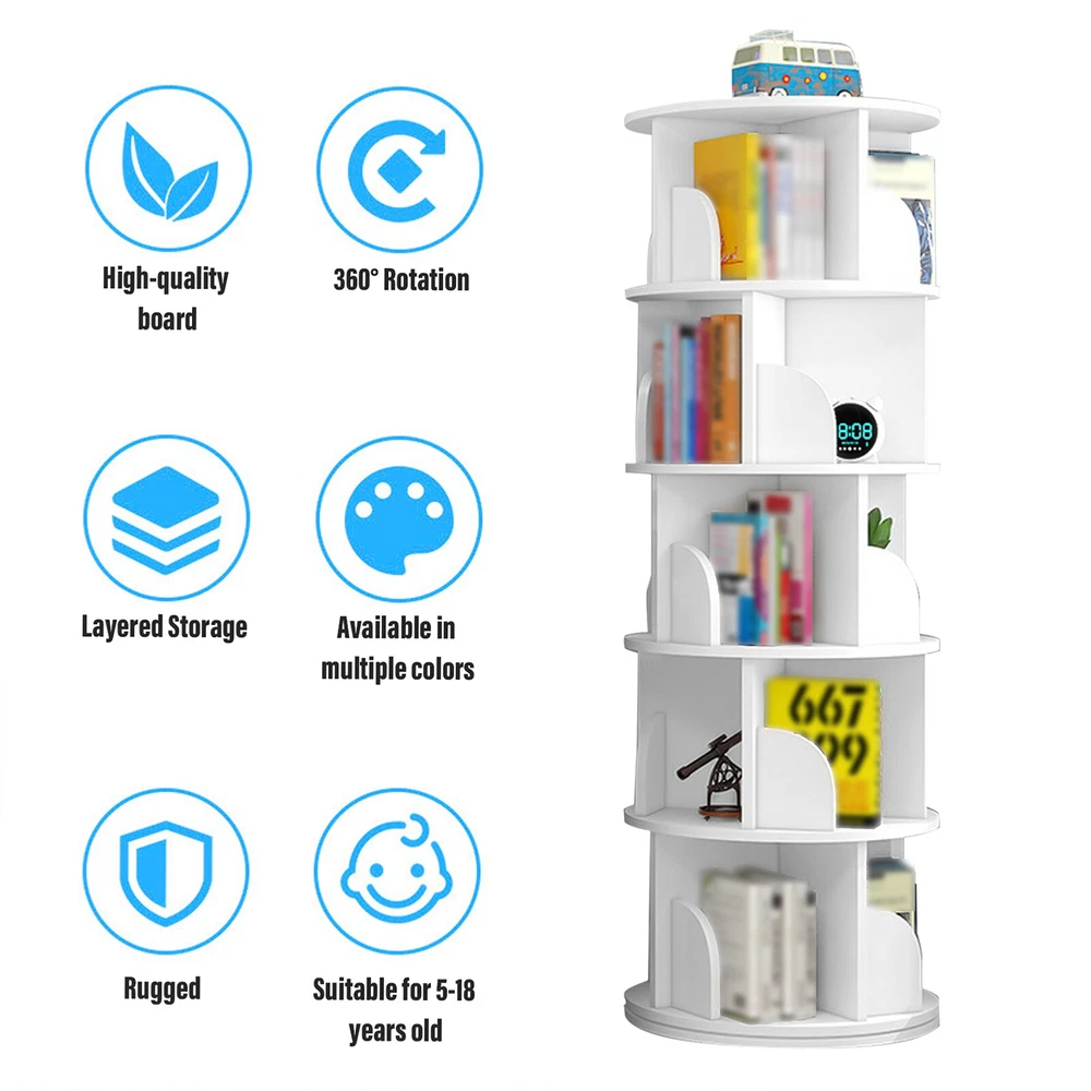 $ 39.955-Tier 360° Rotating Bookcase with Stackable Shelves