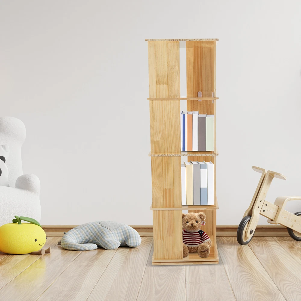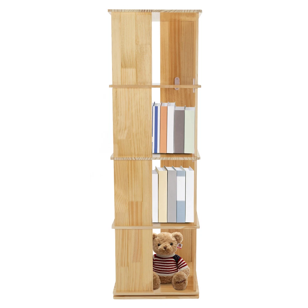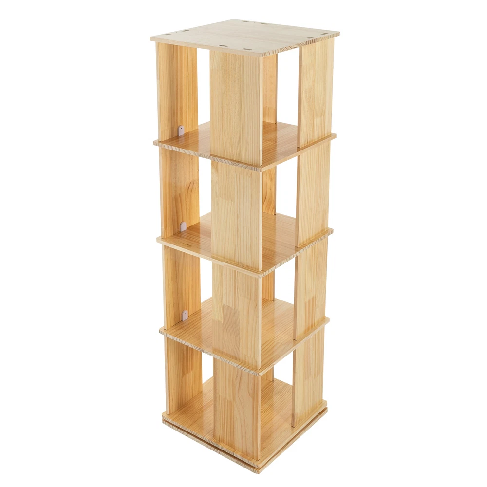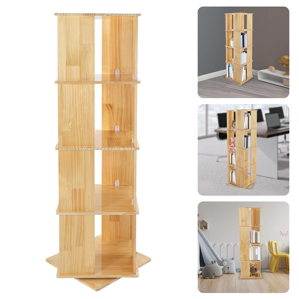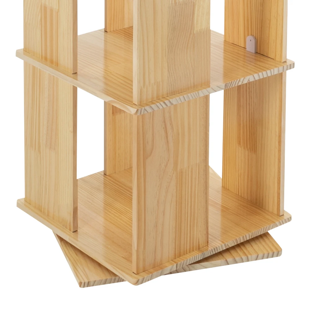 360?? Rotating Bookshelf Bookcase Storage Shelf Display Rack Stand, Wood Color