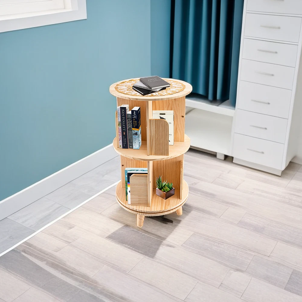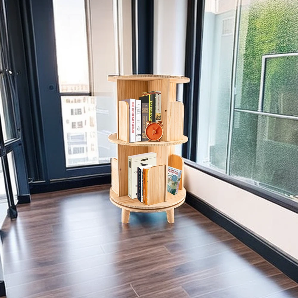 This rotating bookshelf is a game-changer for small spaces! The 360-degree spin makes it super easy to access books or decor from any angle, and the sturdy pine wood holds up to 50kg per shelf—plenty for heavy books. Assembly was quick, and the natural wood finish adds warmth to my room. Perfect for organizing without taking up much floor space. Love how it displays my favorite reads while keeping everything within reach!