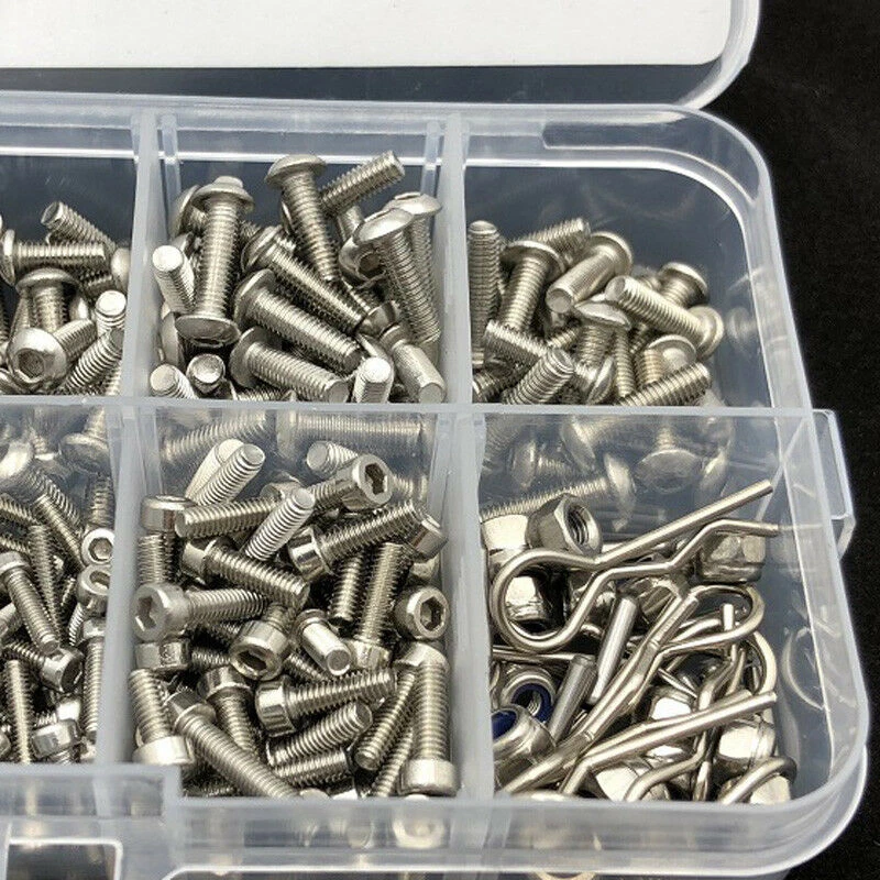 SAFE & SECURE SHOPPING 100% SATISFACTION GUARANTEED FAST SHIPPING 387 pcs/set Stainless Steel Screw Kit For Traxxas TRX-4 Crawler 1/10 RC Car Product Description Features: 100% New Brand Stainless Screw Kits are 100% complete. Your new kit will include everything needed to do a full conversion and more. Stainless Steel Screw Kits are far superior to the screws Specification: Material: Stainless Steel Package Size: 25 x 13 x 7cm Fit for: 1/10 RC Car Traxxas TRX-4 Crawler What's included: 387pcs/set x Stainless Screw Kits (as following) Flat Head screws: M2.5*10 12pcs M3*10 10pcs Round head screws: M2*8 15pcs M2.5*4 10pcs M2.5*8 15pcs M3*6 5pcs M3*8 25pcs M3*10 45pcs M3*12 20pcs M3*16 10pcs M3*18 5pcs M3*20 5pcs M3*22 5pcs M3*25 5pcs Cup head screws: M2*8 45pcs M2*12 5pcs M2.5*6 15pcs M2.5*8 25pcs M2.5*10 50pcs M2.5*12 5pcs M2.5*14 5pcs M2.5*16 10pcs Machine screws(M3*3) 5pcs R type buckle 10pcs Nuts(M3) 5pcs Nuts(M4) 10pcs Tire bolt(2*10) 10pcs Cancel Policy Shipping Policy Return policy Customer Service Cancel Policy 1. Before ordering, please check description carefully to make sure it fits! 2. Before ordering, please make sure the address is correct. 3. T he packing and shipping process would be SUPER FAST, orders can't be cancelled or revised Once Packing Starts! Shipping Policy 1. We dispatch items the same working day if payment has been received before 2pm. 2. We dispatch items via eBay fulfillment. Fast and 100% assured! Return policy 1. Always believe that we could solve the issue directly for you through communication. 2. Free Returns, postage covered by the seller. 3. If a return is the last solution, the product must be the same as you receive, also should be within 30 days after received. Customer Service 1. Please contact us bofore leave reviews or start disputes, we would solve the issue for you asap. 2. We would reply within 24 hours on working days, and within 48 hours on weekends/holidays. Copyright © 2022 Tongtool