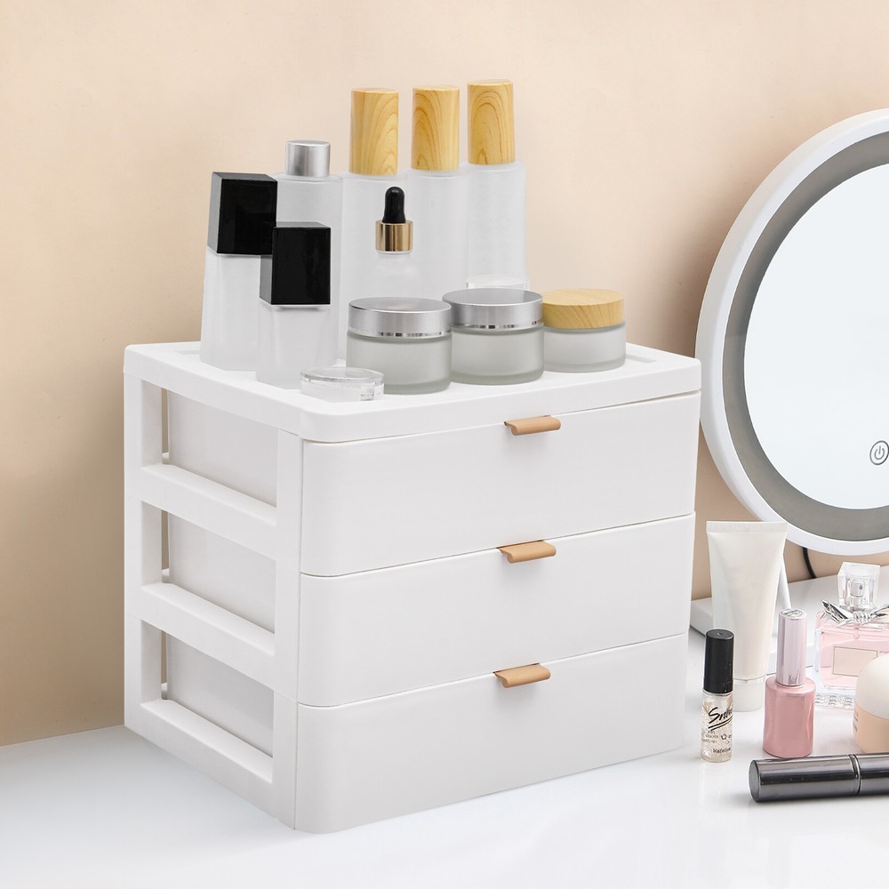 Specification Material: PP Color: White Style: Modern Shape: Rectangular Assembly Required: No Mounting Type: Tabletop Mount Room Type: Home, Office Number of Tiers: 3 Drawers + 1 Top Platform Load-bearing Capacity: About 5kg/11.02lbs Product Size: 26*20.2*22.3cm/10.24*7.95*8.78in Package Size: 28*22*24cm/11.02*8.66*9.45in Gross Weight: 1kg/2.2lbs Net Weight: 0.7kg/1.54lbs Have a nice day~ Specification Material: PP Color: White Style: Modern Shape: Rectangular Assembly Required: No Mounting Type: Tabletop Mount Room Type: Home, Office Number of Tiers: 3 Drawers + 1 Top Platform Load-bearing Capacity: About 5kg/11.02lbs Product Size: 26*20.2*22.3cm/10.24*7.95*8.78in Package Size: 28*22*24cm/11.02*8.66*9.45in Gross Weight: 1kg/2.2lbs Net Weight: 0.7kg/1.54lbs Package Included 1* Desktop Storage Box Specification Material: PP Color: White Style: Modern Shape: Rectangular Assembly Required: No Mounting Type: Tabletop Mount Room Type: Home, Office Number of Tiers: 3 Drawers + 1 Top Platform Load-bearing Capacity: About 5kg/11.02lbs Product Size: 26*20.2*22.3cm/10.24*7.95*8.78in Package Size: 28*22*24cm/11.02*8.66*9.45in Gross Weight: 1kg/2.2lbs Net Weight: 0.7kg/1.54lbs Description This desktop storage box can effectively store a variety of items such as office supplies, school supplies, and cosmetics. The 3-drawer design and top platform can make full use of the storage space and keep items neat and orderly. If you want to improve the tidiness of your home space, add beauty, and bring convenience and comfort to your life, then it is an indispensable little helper for you. Key Features Sturdy and Durable : This product is made of high-quality PP, impact-resistant, and anti-rust, ensuring long-term use. Tidy and Organized : 3 drawers can be sorted to organize tissues, books, data cables, cosmetics, and other daily necessities, creating a cleaner and tidier desktop environment. You can also place frequently used items such as lotions, pens, and notepads on the top platform, so you can access them instantly. Suitable Loading Capacity : The solid PP material and stable rectangular structure provide this item with a suitable bearing capacity(about 11.02 lbs), so you can use it to store your daily cosmetics without worrying about collapse. Space-saving : It is compact (10.24*7.95*8.78in)and stackable, so you can put it on a table and make full use of vertical space, providing you with more storage space and improving space utilization. Stylish Appearance : The white color scheme and rectangular shape highlight the unique image of the product as simple and modern, suitable for most of the decorative styles of the room, and is a good desktop decoration. Effortless to Clean : Simple construction, smooth surfaces, and pull-out drawers make this product easy to clean, you just need a wet towel to easily remove dust. Exquisite Gift: With a beautiful appearance and practical function, it would be a wonderful surprise for your wife, mother, daughter, friend, or loved ones. Guaranteed Customer Service: We aim to provide quality products and services. If you have any problems, please feel free to contact us. We will reply and solve the problem for you as soon as possible. Details Convex Edges : The convex edges on the top prevent items from rolling off. Comfortable Handles : They allow you to push and pull the drawers more smoothly. Rounded Corners : They can protect your hands from being scratched during use and also enhance the aesthetics of the product. Application It can be placed on the desktop or vanity table in the living room, children's room, study, bedroom, office, etc. to store books, jewelry, cosmetics, snacks, sundries, and so on. Notes Please allow the slight color difference caused by the shooting light and 1-3cm error due to manual measurement and make sure you do not mind before ordering. Payment Delivery details Terms of sales About us Contact us Payment We accept ebay payment 。 Fees such as import duties, taxes are not included in the item price or shipping costs. These charges are the buyer's responsibility. Delivery details Shipping: 2-9 working days to: USA Terms of sales We maintain high standards of excellence and strive for hundred percent customer satisfaction. Feedback is very important to us. We hope that you contact us immediately before you give neutral or negative feedback, so that we can address your concerns. It is impossible to address issues if we do not know about them! About us Your satis faction is our ultimate goal. We work hard to earn your trust and future business. Our certified technicians have tested each item before shipping. The unit comes with 1 year limited warranty on all manufacturing defects. a) If you receive a defective item, you may return it or ask for a discount. Please contact us within 14 days after you receive the package. b) What you returned must be intact and in its original packaging as re? u. Customer is responsible for shipping costs of the returned item. c) We will cover the cost of shipping back t with the shipping rate indicated in the registration page. We will send you a new unit or refund the full payment you paid. Thank you. Contact us Business Hour Business Hour: Monday To Friday: 8:30 AM to 5:00 PM (Beijing China time) Due to time zones, our reply to your questions may not be immediately. But within above working time, we will reply your email within 24 hours. If it's non-workdays, please kindly be patient and wait till Monday. Please contact us with ebay message. Please feel free to contact us if you have any questions. Monday To Friday: 8:30 AM to 5:00 PM (Beijing China time) Due to time zones, our reply to your questions may not be immediately. But within above working time, we will reply your email within 24 hours. If it's non-workdays, please kindly be patient and wait till Monday. Please contact us with ebay message. Please feel free to contact us if you have any questions.