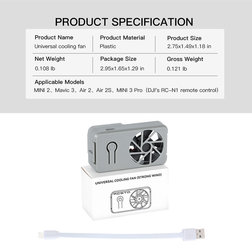NEW-00023 3-Level Speed Rechargeable Cooling Fan Cooler for DJI RC-N1 Remote Control Phone PRODUCT DESCRIPTION Features: Long battery life of the fan, up to 120 minutes at maximum wind speed Universal cooling fan, suitable for various models Three-speed wind speed can be adjusted at will with one key switch Can draw heat away from your device, improve heat dissipation Specifications: Material: Plastic Size: 7x 3.8x 3cm Charging Time: 80 minutes First Gear Use Time: 7 hours Second Gear Use Time: 230 minutes Third Gear Use Time: 120 minutes Applicable Model: for DJI RC-N1 Remote Control Package includes: 1x Cooling Fan 1x Charging Cable Shipping Contact Us Our products have been sent to the US warehouse. All items will be shipped via WINIT CORPORATION. In 2-5 working days, you will receive your items. Thank you and have a nice day. If you have any question about us or items, please contact us, we will reply it as soon as possible. Shipping Our products have been sent to the US warehouse. All items will be shipped via WINIT CORPORATION. In 2-5 working days, you will receive your items. Thank you and have a nice day. Contact Us If you have any question about us or items, please contact us, we will reply it as soon as possible. PaymentShippingReturn policyAbout usContact us Copyright © - Tongtool All rights reserved | Design:Tongtool