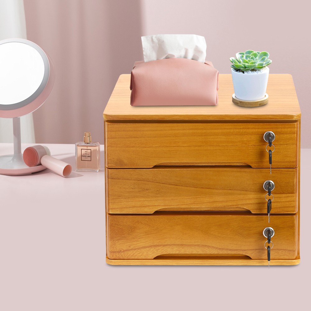 3-Tier Tung Wooden Storage Cabinet with Lockable Drawers Home & Office US Description Do you feel annoyed by too many items on your desktop that are cluttered and unorganized? Our 3-tier storage cabinet can help you solve this problem. This product is made of high-quality material, which ensures a long service life. The 3 drawers are convenient for you to organize different daily items, and the locking design effective ly protects your privacy. It can effectively help you reduce the pressure on your countertop, which is an ideal choice for you. Key Features Good Material: This product is made of high-quality tung wood with a spray painting process, which is hard, strong, anti-corrosion , not easy to deform, and has a long service life. Categorized Storage: The product has 3 drawers, so you can categorize and store your items in different drawers to give your desktop a neat look. In addition, the top can also be used to hold items, allowing you to maximize the use of your space. Protect Your Privacy: This product features the locking design that locks the drawer and can only be opened with the included key to protect your property. Strong Load-bearing Capacity: High-quality material and stable construction give the product a weight capacity of about 66.14 lbs , so you can store items on it with confidence. Save Space: This product is small in size ( 15.75*11.02*12.2 in) , fully utilizing vertical space, thereby reducing the burden on the countertop. Ready to Use: This product does not require assembly, and you can start using it once you receive it, saving the tedious installation process and making it more convenient. Effortless Cleaning: Thanks to the smooth surface and simple construction, you can easily wipe off the dirt on it with a soft cloth. Thoughtful Gift: This is an ideal gift for colleagues, friends, and family to help them organize their belongings and keep their desks tidy. Good Customer Service: We stand behind all our guests and look forward to assisting you with your purchase. It is our pleasure to answer your confusion and questions. The end of the story between us is not "we sell and you buy". Details Comfortable Handles: Each drawer has an ergonomic handle that is not only comfortable but also easy for you to pull the drawer. Smooth Edge: The rounded and smooth edges not only add to the aesthetics of the product but also improve the safety of use. Anti-slip Pad: It can keep the product stable and less likely to slip off while you use it. Application This product can be used in an office, study, bedroom, dresser, kitchen, etc. It is suitable for organizing documents, files, pens, notebooks, handy stickers, remote controls, staplers, cosmetics, greeting cards, tickets, business cards, stationery, jewelry, hair accessories, and so on. Specification Color: Wood Yellow Shape: Rectangle Style: Modern Material: Tung Wood Process: Spray Paint Assembly Required: No Number of Tiers: 3 Number of Locks: 3 Number of Keys: 6 Max. Load Capacity: About 30kg/ 66.14 lbs Gross Weight: 5kg/ 11.02 lbs Package Size: 45*33*36 cm/ 17.72*12.99*14.17 in Product Size: 40*28*31 cm/ 15.75*11.02*12.2 in Package Included 1* 3-Tier Storage Cabinet 6* Keys 4* Anti-slip Pads Notes Please allow the slight color difference caused by the shooting light and the 1-3 cm error due to manual measurement, and make sure you do not mind before ordering. Payment Delivery details Terms of sales About us Contact us Payment We accept ebay payment 。 Fees such as import duties, taxes are not included in the item price or shipping costs. These charges are the buyer's responsibility. Delivery details Shipping: 2-9 working days to: USA Terms of sales We maintain high standards of excellence and strive for hundred percent customer satisfaction. Feedback is very important to us. We hope that you contact us immediately before you give neutral or negative feedback, so that we can address your concerns. It is impossible to address issues if we do not know about them! About us Your satis faction is our ultimate goal. We work hard to earn your trust and future business. Our certified technicians have tested each item before shipping. The unit comes with 1 year limited warranty on all manufacturing defects. a) If you receive a defective item, you may return it or ask for a discount. Please contact us within 14 days after you receive the package. b) What you returned must be intact and in its original packaging as re? u. Customer is responsible for shipping costs of the returned item. c) We will cover the cost of shipping back t with the shipping rate indicated in the registration page. We will send you a new unit or refund the full payment you paid. Thank you. Contact us Business Hour Business Hour: Monday To Friday: 8:30 AM to 5:00 PM (Beijing China time) Due to time zones, our reply to your questions may not be immediately. But within above working time, we will reply your email within 24 hours. If it's non-workdays, please kindly be patient and wait till Monday. Please contact us with ebay message. Please feel free to contact us if you have any questions. Monday To Friday: 8:30 AM to 5:00 PM (Beijing China time) Due to time zones, our reply to your questions may not be immediately. But within above working time, we will reply your email within 24 hours. If it's non-workdays, please kindly be patient and wait till Monday. Please contact us with ebay message. Please feel free to contact us if you have any questions. Brand Unbranded Item Length 15.75in Item Width 11.02in Item Height 12.2 in Type Desktop Storage Box Material Tung Wood Features Lockable Color Wood Yellow Mounting Free Standing Assembly Required No Style Modern Shape Rectangular Process Spray Paint Number of Tiers 3 Number of Locks 3 Number of Keys 6 Max. Load Capacity About 30kg/ 66.14 lbs Gross Weight 5kg/ 11.02 lbs Product Size 40*28*31 cm/ 15.75*11.02*12.2 in Package Size 45*33*36 cm/ 17.72*12.99*14.17 in UPC Does not apply