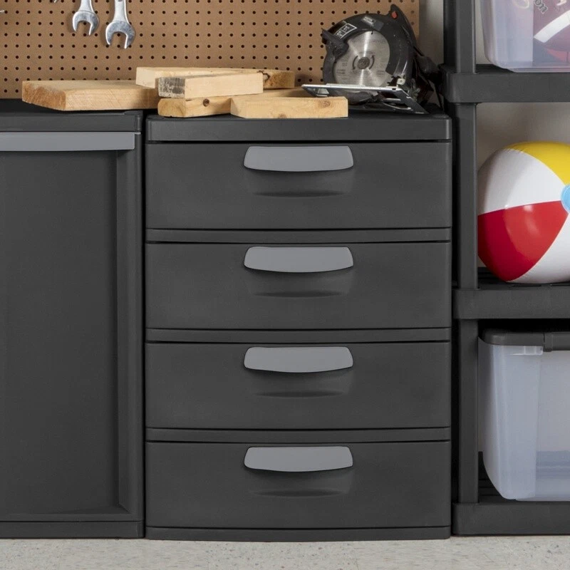 2 pack 5'x7' Green Artificial Faux Grass Outdoor Rug Pet Friendly Area Rug NEW 83.53 USD Free shipping 4PC Square Wall Mount Towel Holder Bath Chrome Hardware Set Easy Install New 31.08 USD Free shipping 40lb Adjustable Dumbbell Set Cast Iron Weight Plates Home Gym Fitness Equipment 64.37 USD 69.21 USD Free shipping 7% off Adjustable 55 lb Barbell Dumbbell Set Strength Training Home Gym Workout New 66.56 USD 71.57 USD Free shipping 7% off Heavy Duty 5-Shelf Boltless & Adjustable Steel Storage Shelf Unit Silver 4 Pack 189.54 USD 203.81 USD Free shipping 7% off 4PCS 10 Cup Glass Storage Containers Airtight Lids Stackable Box Dishwasher Safe 48.73 USD 52.4 USD Free shipping 7% off 3-Door TV Stand Console TVs Up to 50in W/ Open Shelves & Storage Drawers New 120.96 USD 130.06 USD Free shipping 7% off Rechargeable Foot File Dual Speed Exfoliator Dead Skin Remover Diamond Roller US 50.18 USD Free shipping Ugly Stik Catfish Fishing Rod Reel Combo 7ft Medium Heavy Durable Spinning Rod 62.14 USD 66.82 USD Free shipping 7% off Lattice High Back Slat Seat Steel Outdoor Garden Bench Black Patio Bench Seats 2 85.45 USD 91.88 USD Free shipping 7% off Single Drawer Nightstand End Table Storage Cubby Accent Table Solid Wood New 76.38 USD 82.13 USD Free shipping 7% off 4-Shelf Steel Storage Rack Heavy Duty Adjustable Utility Shelf Organizing Unit 65.47 USD 70.4 USD Free shipping 7% off Organize with ease! The durability, modularity, and simplicity of ’s versatile 4 Drawer Unit makes it the ideal solution for basements, attics and garages. The trend forward color is both sleek and refined and complements a variety of living areas, offering additional storage options for pantries, utility /laundry areas, bedroom/dorms and mudrooms. The large-capacity drawers glide smoothly on hidden rollers, even under a heavy load, while the wide ergonomic comfort grip handles make opening and closing the drawers easy. The solid side walls offer strength and durability, while also concealing contents for a neat appearance. Drawer stops are used to prevent drawers from being removed accidentally. Heavy duty plastic will not dent, chip, peel or rust, ideal in a challenging environment. Create a custom storage solution with other Hardware items, such as the 5 Shelf Shelving Unit, 4 Shelf Shelving Unit, and 4 Shelf Cabinet. The overall assembled dimensions of this item are 35 3/4" H x 25 5/8" W x 19 1/4" D. Plastic 4 Drawer Unit Adult Dk Gray Outside Dimensions: 25 5/8" x 19 1/4" x 35 3/4" Ideal organizational solution for garages, basements and throughout the home Large-capacity drawers glide smoothly on hidden rollers Solid sided walls offer strength and durability Drawer stops included to prevent drawers from being removed accidentally Will not dent, chip, peel or rust BPA-free and phthalate-free You may also like 18-PACK 48-in Peel and Stick Above Ground Pool Cove Swimming Pools Wall Foam 51.04 USD 54.88 USD Free shipping 7% off Oversized Director Chair with Side Table Heavy Duty Outdoor Camping Chair Green 50.09 USD 53.86 USD Free shipping 7% off Real Beef, Pea & Brown Rice Recipe Dry Dog Food 14 lb. Bag w/Added Vitamins US 27.26 USD 29.31 USD Free shipping 7% off 40lb Adjustable Dumbbell Set Weight Dumbbells Hand Weights Plates Home Gym Black 61.26 USD 65.87 USD Free shipping 7% off Distressed 5 Gun Wall Rack w/Shelf Hunt Rifle Shotgun Storage Wall Mount Display 41.82 USD 44.97 USD Free shipping 7% off 200-Qt Latching Rolling Clear Plastic Storage Tote Bin Container Boxes Set of 2 111.44 USD 119.83 USD Free shipping 7% off 15x6.00-6 Pneumatic Replacement Front Tire &Wheel Assembly for John Deere Mower 61.99 USD Free shipping Werewolf Animatronic with Lights and Scary Sound Scarecrow Outdoor Prop NEW US 111.49 USD 119.88 USD Free shipping 7% off Modern Barrel Accent Arm Chair Single Sofa Living Room Lounge Chair Gray Velvet 112.6 USD 121.08 USD Free shipping 7% off Modern Industrial Coffee Table Walnut Center Living Room Coffee Table Livingroom 34.62 USD 37.23 USD Free shipping 7% off 5-Foot Fold-In-Half Table Indoor Outdoor Picnic Party Camping Dining Table Gray 50.09 USD 53.86 USD Free shipping 7% off Round Enameled Wood Toilet Seat w/Lid Black Easy To Install &Clean Never Loosen 33.12 USD 35.61 USD Free shipping 7% off