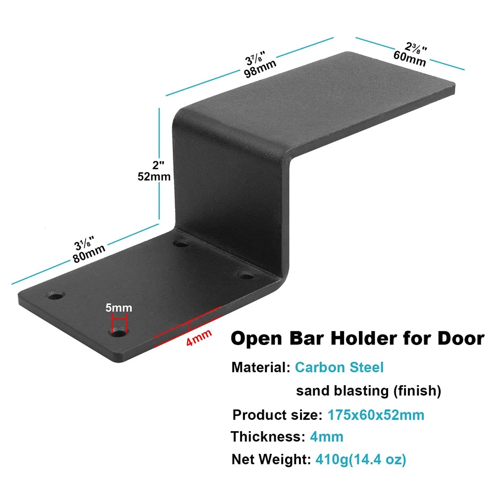 4 Packs 2x4 Inches Black Door Barricade Closed Bar Holder Drop Open Lock Bracket Security Bar Door Stopper, Fits 2x4 Inch Boards Lumber, Thickness 4mm(Screws not Included) Specification: Material: Carbon Steel Surface Treatment: Surface Sand Blasting Finished Fit for 2x4 Inch Lumber Thickness: 4mm Color: black Product size: 9⅝" x 7" x 7"(245 x 175 x 175mm) Package size: 20 x 8 x 6.5cm Weight: 14.4 oz(410 g)-1 pack, 3.8lb(1.73kg)-4 packs Package Content: 4 x Security Door Lock Brackets (Screw not Included) Material: Carbon Steel + Surface Sand Blasting Finished Bracket Thickness: 4mm. Fit for 2x4 Inch Lumber Each Bracket 4 screw holes can effectively support and fix the bolts Fit For 2x4 Lumber- works well as gate lock, door jammer, door blocker security, door reinforcement, door armor (Scew and lumber not included)