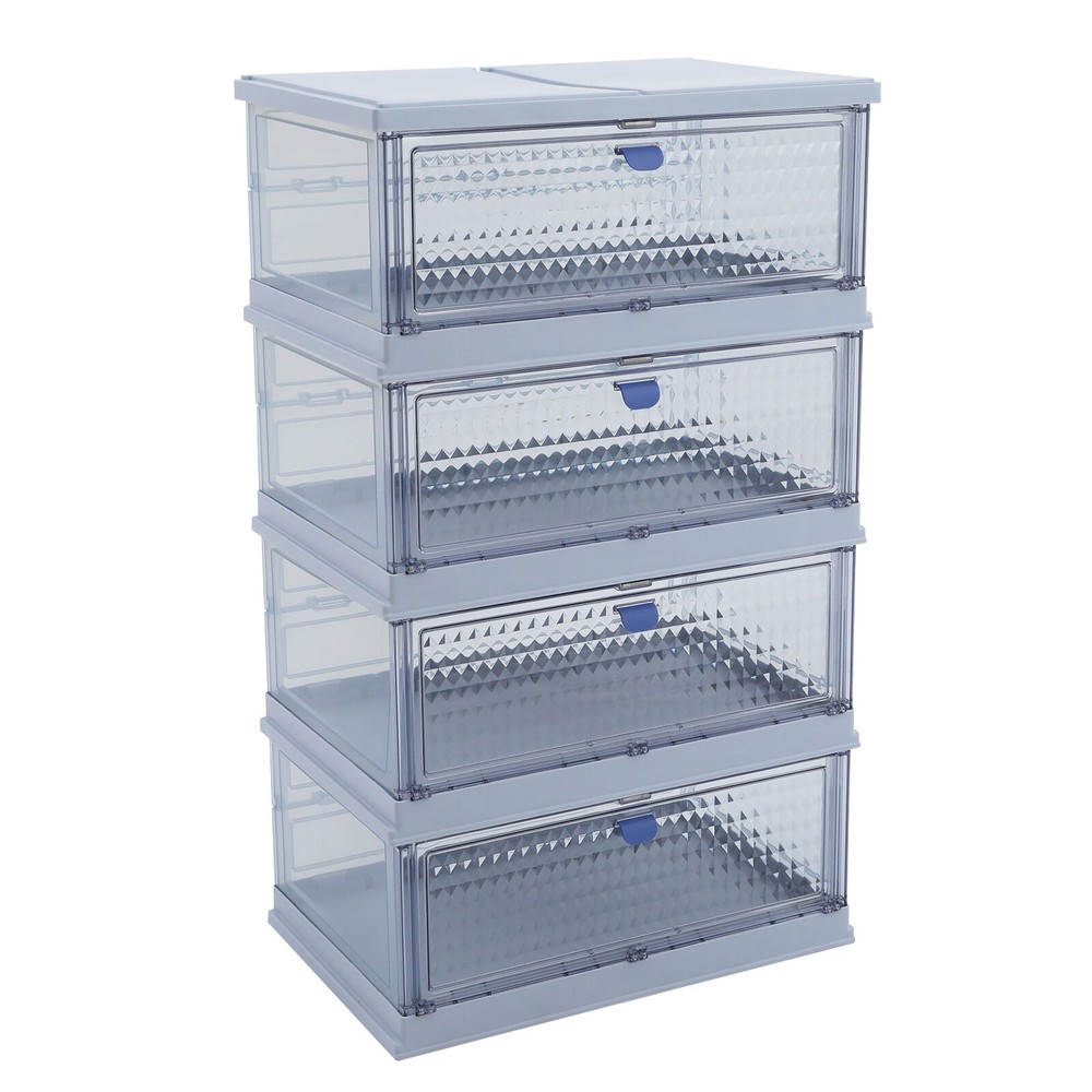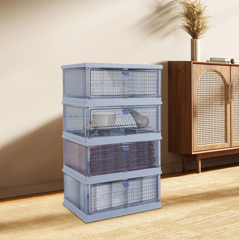 Have a nice day~ Description Do you still struggle with clutter and lack of storage space in your home? This storage cabinet will keep your room organized with its small footprint and large storage space. The strong weight-bearing capacity allows you to use it with confidence, and the foldable design makes it easy to carry and store. If you want to have a neat space, this product is an indispensable helper for you. Key Features Solid and Durable : This product is made of high-class PP and PS, which is anti-corrosion, anti-rust, environmentally friendly, strong, and durable, ensuring you can use it for a long time. Spacious Storage Space : The 4-tier structure provides you with the convenience of storing different categories of items in separate sections, including shoes, snacks, pet supplies, and toys. In addition, the large top platform is convenient for placing your flower pots, bags, keys, umbrellas, and more. Thoughtful Design: The visual design allows you to see items inside at a glance, making it easier to select, access, and place items. The magnetic cabinet door will not open automatically when moving or stationary and is effective in preventing dust and insects in daily use. The diamond panel allows you to see what is inside in a way that doesn't look messy. Strong Bearing Capacity : High-class material, one-piece frame, and rectangular structure make this product withstand 14.33 lbs in each tier, so you can use it with confidence without worrying about collapsing. Foldable and Portable: You can fold this product into a smaller size for convenient storage when not in use, which will not take up much space. Simple to Use : This product adopts an integrated foldable design with a simple structure without additional assembly. You simply unfold it to start using it, thus saving time and effort. Effortless Clean : The smooth surface and simple structure make the cabinet easy to clean with water and a damp cloth (not included). Ideal Gift : Beautiful appearance and practical function make it an ideal housewarming gift for family and friends so that they can enjoy a more exquisite life. Stylish Appearance : The pleasing blue color, diamond patterns on the doors, and smooth lines make the whole product lovely and modern. Wherever it is placed, it will be beautiful scenery. Application It is suitable for storing shoes, cosmetics, books, towels, snacks, sundries, and more in entrances, kitchens, closets, study rooms, living rooms, cloakrooms, or bedrooms. Details Practical Handles : The handles on each door make it easy to open and close the doors. Smooth Edges : They not only enhance the aesthetics of the product but also improve safety during cleaning and use. Specification Color: Blue Style: Modern Shape: Rectangle Material: PP, PS Process: Injection Molding Mount Type: Floor Standing Each Tier Load-bearing Capacity: 6.5kg/14.33 lbs Number of Tiers: 4 Product Size(Unfolded): 52.7*34.8*89.24cm/20.7*13.7*35.1in Package Size: 59*24*42cm/23.23*9.45*16.54in Gross Weight: 6.55kg/14.44lbs Net Weight: 5.72kg/12.61lbs Package Included 1* Storage Cabinet Notes Please confirm the product dimensions before purchasing. Please avoid heavy impact, sharp objects, or direct high-temperature exposure during use to avoid product damage or aging. Please note that this product does not include other items shown in the picture. Please allow the slight color difference caused by the shooting light and 1-3cm error due to manual measurement and make sure you do not mind before ordering. Payment Delivery details Terms of sales About us Contact us Payment We accept ebay payment 。 Fees such as import duties, taxes are not included in the item price or shipping costs. These charges are the buyer's responsibility. Delivery details Shipping: 2-9 working days to: USA Terms of sales We maintain high standards of excellence and strive for hundred percent customer satisfaction. Feedback is very important to us. We hope that you contact us immediately before you give neutral or negative feedback, so that we can address your concerns. It is impossible to address issues if we do not know about them! About us Your satis faction is our ultimate goal. We work hard to earn your trust and future business. Our certified technicians have tested each item before shipping. The unit comes with 1 year limited warranty on all manufacturing defects. a) If you receive a defective item, you may return it or ask for a discount. Please contact us within 14 days after you receive the package. b) What you returned must be intact and in its original packaging as re? u. Customer is responsible for shipping costs of the returned item. c) We will cover the cost of shipping back t with the shipping rate indicated in the registration page. We will send you a new unit or refund the full payment you paid. Thank you. Contact us Business Hour Business Hour: Monday To Friday: 8:30 AM to 5:00 PM (Beijing China time) Due to time zones, our reply to your questions may not be immediately. But within above working time, we will reply your email within 24 hours. If it's non-workdays, please kindly be patient and wait till Monday. Please contact us with ebay message. Please feel free to contact us if you have any questions. Monday To Friday: 8:30 AM to 5:00 PM (Beijing China time) Due to time zones, our reply to your questions may not be immediately. But within above working time, we will reply your email within 24 hours. If it's non-workdays, please kindly be patient and wait till Monday. Please contact us with ebay message. Please feel free to contact us if you have any questions.