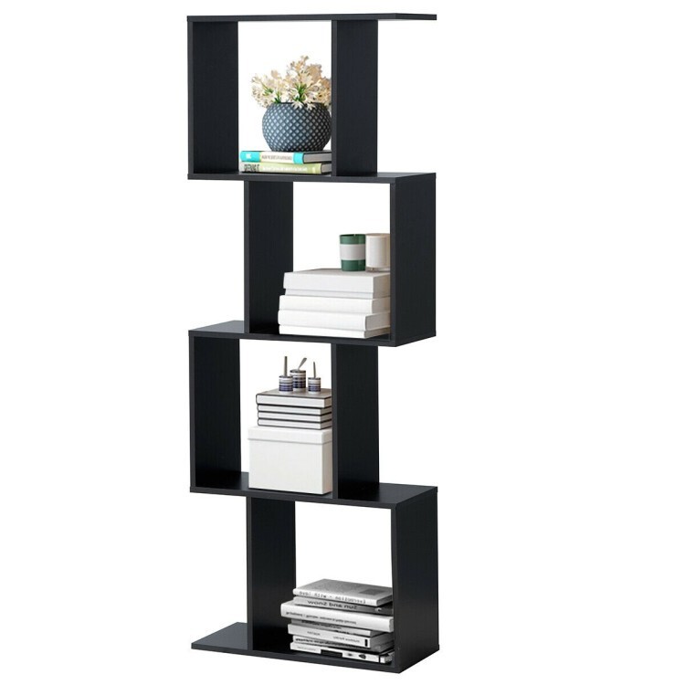 4 Tier S-Shaped Wooden Bookcase for Living Room or Office Storage