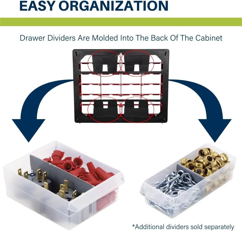 Product Description 10144 44-Drawer Plastic Drawer Storage Cabinet for Garage Organization, Lego Storage, Teacher Toolbox, Makeup Organizer, and More, 20-Inch W x 6-Inch D x 16-Inch H, Black HEAVY DUTY CABINET WITH 44 DRAWERS: The 44-drawer small storage cabinet is made from rugged, high-impact polystyrene plastic and measures 6.37"D x 20"W x 15.81" H; Drawer dimensions - 6" x 4-1/2" x 2-3/16" (large); 6" x 2-1/4" x 1-5/8" (small) GARAGE ORGANIZATION: The small cabinet is great for garages and workshops for both homeowners and businesses; The plastic storage drawers can be used as tool box, screw organizer or for battery storage; Keep nails and other small parts accessible CLASSROOM ESSENTIALS: Teachers can use the stackable storage drawers for classroom organization; Use it as a teacher toolbox, art supply storage organizer, craft storage cabinet for scrapbook supplies, and more HOME STORAGE AND ORGANIZATION: This plastic storage cabinet offers many uses around the home; It can be a lego storage organizer, craft organizer, or sticker organizer; Use it for makeup storage and organization or for medicine and first aid supplies CABINET AND DRAWER FEATURES: Stack cabinets securely or wall-mount them using keyhole slots; Finger-grip drawer pulls provide easy access; Rear stop tabs prevent contents from spilling; Drawer dividers are included and molded into the back of the cabinet About Us We are a reputable seller with many years of experience selling on eBay. Our goal is to provide high-quality products and excellent customer service. Payment 1.We accept PayPal only. 2.All major credit cards are accepted through secure payment processor PayPal. 3.Payment must be received within 7 business days of auction closing. 4.We ship to your eBay or Paypal address. Please make sure your eBay and Paypal address is correct before you pay. Feedback will be left automatically after we receive your feedback. Please contact us before leaving a Negative feedback or Neutral feedback. We would try our best to help you solving any problem. Shipping Items will be shipped within 1-3 business days when we received payment. (Orders are not processed on weekends & holidays) Tracking information will be sent once item is shipped. Delivery time depends on destination and other factors Item is shipped to ebay address. Leaving correct address can minimize delay. For international shipping and shipping to Guam, Hawaii and Alaska, Please contact us before placing the order. International buyers please note: Import duties, taxes and charges are not included in the item price or shipping charges. These charges are buyer’s responsibility. We will try our best to reduce the risk of the custom duties. Local pick-up is unavailable at the moment. Returns For any issues with Defects, Return, Item Exchange request, please contact us first and send us a message first before opening any type of case or request. We devote ourselves making EVERY CUSTOMER in 100% Satisfactory and resolve any problem. We highly value and appreciate your business. Thank you. No returns will be accepted without an RMA number. Please contact us for the RMA number. Return is acceptable within 30 days of delivery. Return for replacement or money back is optional. Returned items must be in the brand new, unaltered and resalable condition. Seller is not responsible for any labor cost, expense in a dealer store, or damage due to wrong installation. Contact Us We reply any email messages within 1 business / working days(off-duty at weekend). If you do not get a response from us, then please check your junk or spam mailbox. Our Business hours: Mon-Fri 9:00-18:00, UTC/GMT +8 hours. Please contact us either by clicking "contact seller" in the "purchase history" section or simply click "ask a question" at the bottom of this page. If you are unsatisfied with our item or service, please contact us before leaving any feedback. We are committed to resolve all issues in a friendly and satisfactory manner. powered by