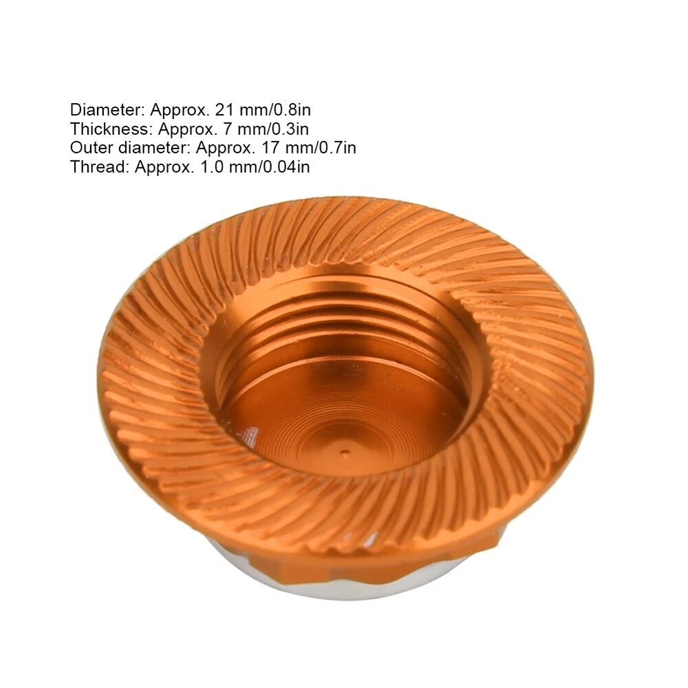 Feature: 1. Wheel hub anti-dust cover for 1:8 RC Car wheel accessories. 2. High simulation performance of real tools,increase the authenticity of your RC car. 3. Made of high quality plastic material, light weight and easy to carry. 4. Non-slip design makes product performance more stable. 5. Applicable to 1/8 RC Crawler, suitable for AGAMA, for X ray, for LOSI, for HB, for AE, for Team- C, for HSP. Specification: Item type: RC Car Hub Nut Condition: 100% brand new Material: aluminium alloy Weight: Approx. 11g Optional Color: blue, red, orange Diameter: Approx. 21 mm/0.8in Thickness: Approx. 7 mm/0.3in Outer diameter: Approx. 17 mm/0.7in Thread: Approx. 1.0 mm/0.04in Applicable to 1/8 RC Crawler, suitable for AGAMA, for X ray, for LOSI, for HB, for AE, for Team- C, for HSP. Package List: 4 x RC Car Hub Nut Note: Please allow 1-3mm measuring deviation due to manual measurement.