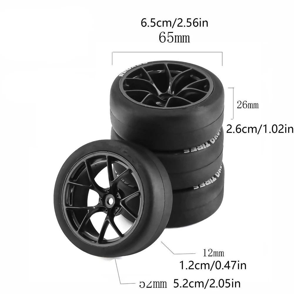 4Pcs/Set Tires & Wheels Rims For Tamiya TT01 TT02 XV01 HPS HPI 1/10 RC Car vv