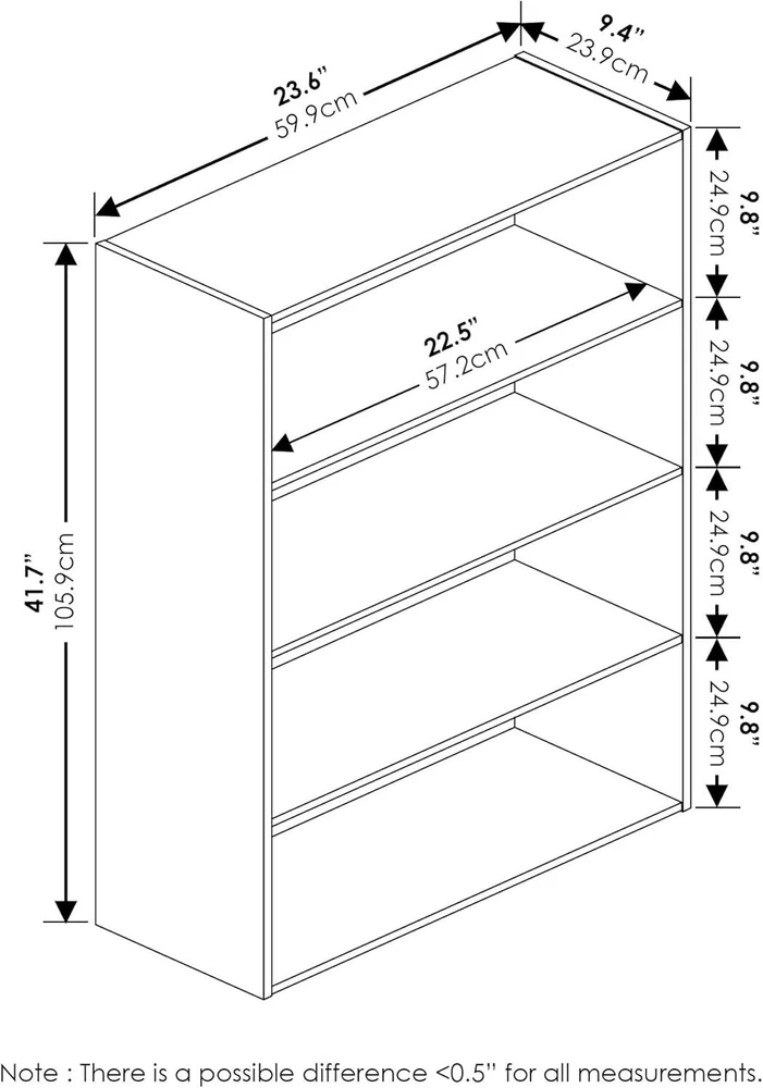 You may also like 50 Pair Shoe Tower Rack Organizer Portable Rolling Wheel 10 Tier Storage Shelf 41.97 USD 45.65 USD Free shipping 8% off Bathroom Fan with Light Exhaust Fan Ceiling Mount Vent Fan Light Combo 110 CFM 58.45 USD Free shipping 24pc Borosilicate Glass Storage Containers with Lids 12 Airtight Freezer Safe 40.27 USD 43.8 USD Free shipping 8% off Turtle Aquarium Kit Aquatic Turtle Tank W/ Filter Light Turtle Basking Platform 85.65 USD 93.32 USD Free shipping 8% off Hollow Curl Bar and Dumbbell Handle Set W/Spring Collars Heavy-Duty Chrome Steel 48.2 USD Free shipping Adjustable Media Cabinet 12 Adjustable and 4 Fixed Shelves Video Game Organizer 60.2 USD 65.69 USD Free shipping 8% off Torin Hydraulic Stubby Low Profile Welded Bottle Jack 12Ton (24,000 lb) Capacity 50.26 USD Free shipping 160-Watt-Max Powered Bluetooth Bookshelf Wooden Speakers Enclosures W/ LED Light 61.65 USD 64.9 USD Free shipping 5% off Mini Chainsaw 6 Inch Cordless Battery Powered Electric Chainsaw with 2 Batteries 40.31 USD 43.84 USD Free shipping 8% off CD Player Portable Boombox with FM Radio USB Bluetooth AUX Input Earphone Jack 44.15 USD 48.03 USD Free shipping 8% off Pizza Oven 1440W Countertop Electric Pizza Maker W/ 12” Nonstick Cooking Plates 50.39 USD 54.84 USD Free shipping 8% off Big Flyer Sport Chopper Tricycle 16" Front Wheel Kids' Bikes Riding Toys Pink 82.0 USD 86.32 USD Free shipping 5% off Room Type Dorm Room, Living Room, Bedroom, Classroom, Home Office Number of Shelves 4 Special Feature Heavy Duty Product Dimensions 9.4"D x 23.6"W x 41.7"H Style 4-Tier Age Range (Description) Adult Finish Type Laminated Product Care Instructions Avoid Using Harsh Chemicals, Wipe with Dry Cloth Size 4-Tier Manufactured from Wood Imported Simple stylish design yet functional and suitable for any room Material: Manufactured from Engineered particle board. Fits in your space, fits on your budget. Holds up to 15 lbs per shelf Sturdy on flat surface. Assembly Required. Product dimension: 23.6 (W)x9.4(D)x41.7(H) inches You may also like 5-Tier Glass Tower Room Décor Modern Shelves for Storage and Display Living Room 62.48 USD 65.77 USD Free shipping 5% off 20 Cube Bookshelves Bookcases DIY Tall Bookshelf Book Shelves for Bedroom Office 54.42 USD 59.24 USD Free shipping 8% off Kids Bin Toy Storage and Bookcase Organizer Shelf Playroom Bookshelves White 65.48 USD 68.93 USD Free shipping 5% off Media Tower Rack Storage DVD CD Adjustable Shelf Cabinet Organizer Stand Holder 42.81 USD 45.06 USD Free shipping 5% off 5-Cube Storage Bookcase with Name Plates Home Office Display Shelf Organizer 139.78 USD 147.14 USD Free shipping 5% off 3-Tier Multipurpose Compact Display Rack Shelving Unit Bookcase Espresso/Black 31.34 USD 32.99 USD Free shipping 5% off 71" Tall 5-Shelf AdjustableWood Bookcase Storage Shelving Book Wide Bookshelf 57.89 USD 60.94 USD Free shipping 5% off Adjustable 5-Shelf Wood Bookcase Storage Shelving Book Wide Bookshelf 71" Tall 57.89 USD 60.94 USD Free shipping 5% off