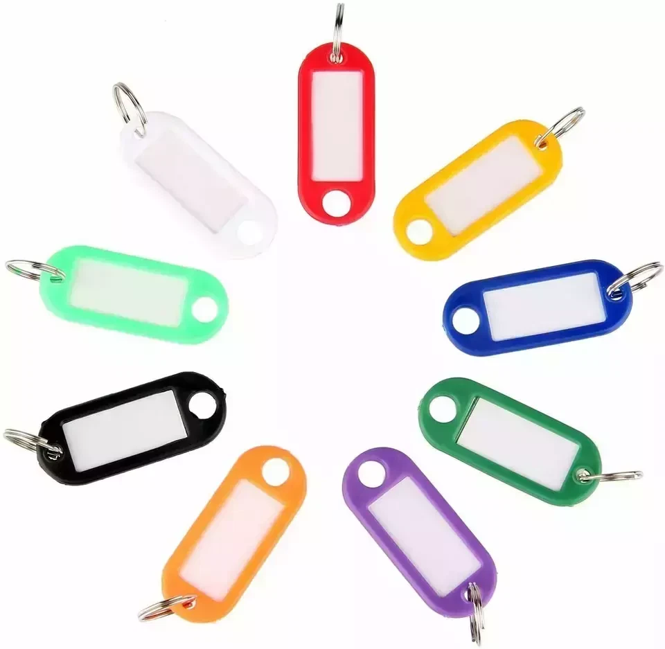 Description: The label can be slid out and replaced / edited quickly and easily Label is protected by a clear plastic cover. Complete with split ring attachment Ideal tags for work keys, house keys, car keys, etc Great for luggage, backpacks, gym bags and more Material: Plastic Size: approx 5*2cm(2.1X0.8 in) The insert paper size: approx 3*1.5cm (1.25X0.6 in)