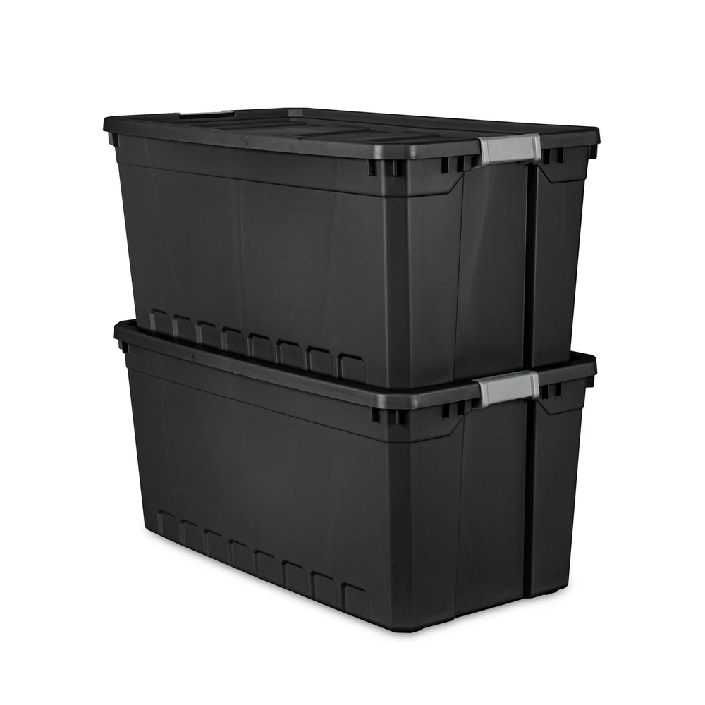 You may also like Travel Duffle Bag Underseat Carry On Bag Airplanes Gym Sports Weekend Overnight 20.6 USD Free shipping Nonstick Aluminum Stock Pot W/ Glass Lid Soft Touch Handles 12.7qt Cooking Pot 34.3 USD Free shipping Gray Utility Door Mat Heavy Duty Non Slip Stain Resistant Indoor Outdoor New 10.26 USD Free shipping Full Size Sewing Machine Embroidery 17 Stitches &4 Sewing Feet Portable New 119.91 USD Free shipping 5 Tier Mesh Desk Organizer File Holder Sliding Drawer Office Home Storage Black 36.8 USD Free shipping Electronic Heating and Cooling Smart Pet House Dog Cat Electric Heating Indoor 100.16 USD Free shipping Collapsible Utility Wagon Cart Foldable Heavy Duty Camping Grocery Garden Sports 64.11 USD Free shipping 12 Inch Tool Bag Heavy Duty Storage Organizing Utility Tote W/ Pockets New 10.87 USD Free shipping Plastic Collapsible Cart Organizer Foldable Beach Outdoor Wagon Cart Garden 43.31 USD Free shipping Clear Plastic Punch Bowl Elegant Beverage Server Ideal Parties Weddings Events 9.82 USD Free shipping Travel Duffle Bag Gym Bag Overnight Weekender Carry-on Yoga Tote Wet/Dry Pocket 32.38 USD Free shipping Kids 16" Rolling Backpack with Lunch Bag Travel School Work Bag Gift 53.43 USD Free shipping In need of a durable storage system for closets, basements, garages, or attics? The Sterilite Modular Stacker line features rugged construction for added peace of mind that contents will stay safely stored inside. The 50 Gallon Stacker Tote is the perfect size for camping gear, sports equipment, seasonal decorations, and other bulky items, and the opaque base allows contents to be out of sight. The robust latches offer extra security that the lid will stay attached to the base, and the textured surface makes for a sure grip when carrying. The deep recessed lids provide stability when stacking for efficient use of storage space. The 50 Gal Stacker Tote shares the same lid as the 200 Qt Stacker Box allowing secure stacking and the clear and opaque versions to be stacked interchangeably. The overall assembled dimensions of this item are 39 3/4" L x 21 1/2" W x 17 7/8" H. Sterilite Adult Plastic 50 Gal. Stacker Tote Plastic, Black, Set of 3: Outside Dimensions: 39 3/4" x 21 1/2" x 17 7/8" The 50 Gallon Stacker Tote is the perfect size for camping gear, sports equipment, seasonal decorations, and other bulky items Set of 3 Durable solid channeled walls provide added strength and conceal contents - Black Interior Dimensions at bottom: 34 1/4" x 18" x 17 3/8" This durable storage solution is ideal for garages, basements, attics, and more Heavy duty latches help to secure the lid to the base and provide a sure grip surface Deep indexed lid surface allows multiple totes to stack securely BPA-free and phthalate-free You may also like 50 Gallon Stacker Tote Plastic, Black,Set of 3 Garage Storage Toolbox Tool Case 103.46 USD Free shipping