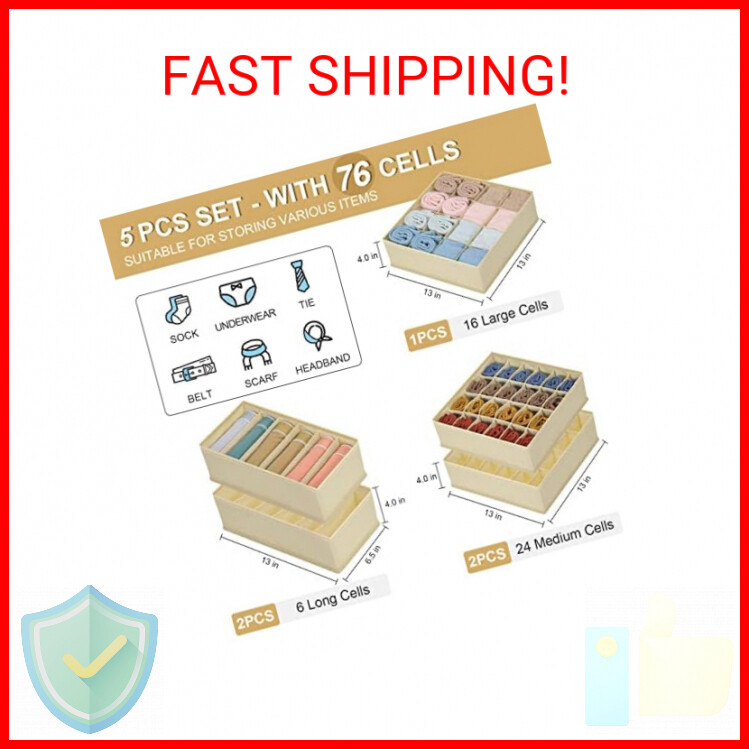 5 Pack Sock Underwear Organizer Drawer Dividers, Foldable Fabric Dresser Closet Organizers Box, Bedroom Cabinet Organization and Storage Bins for Baby Clothes, Undies, Handkerchiefs, Ties - Beige - PRODUCT COMPOSITION: Our collapsible drawer organizer includes 5 beige bins: 2 packs 24-cell, 1 pack 16-cell, and 2 packs 5-cell. Suitable for all kinds of socks and underwear, or anything you want to store, simple and practical, keeps your bedroom in order - SPACE SAVING AND MULTI-PURPOSE: The ideal size divider is suitable for most drawers, cells of different sizes can easily store any item and let you quickly find them when needed, perfect for you to organize socks, panties, sports bras, thongs, handkerchiefs, scarf, ties, belts, lingeries, etc - PREMIUM MATERIAL: The storage organizers are made of premium and durable breathable non-woven fabric, good flexibility, dust-proof, moisture-proof and caues no extra pungent smell. The sidewalls are inserted with high-density pp-boards, resist to bend, and crack, the overall architecture is not easy to deform, you can buy with confidence - EASY TO ASSEMBLE: These underwear storage boxes are lightweight, foldable, and can be used normally when the bottom zipper is pulled up, the attached white PP board is used to assemble the dividers of 5 cells. The suit is widely used in the bedroom, bathroom, office, closet, wardrobe, chest of drawers, under-bed storage, tank tops, desk, shelf - 100% SATISFACTION CUSTOMER SERVICE: If the product you received was damaged or imperfect or you are not 100% satisfied, please contact us directly, we will provide a satisfactory solution for you Payments We accept the following payment methods PayPal Support Our dedicated customer support team is here to assist you from 9AM to 5PM Monday through Friday, excluding public holidays. Should you reach out to us and not recieve an immediate response, it's likely due to a higher-than-usual volume of inquires. We want to reassure you that your concerns are important to us, and we're working dilligently to get back to you. Expect a response by the next business day at the latest. Your understanding and patience are greatly valued as we strive to provide you with the best support possible! Shipping All orders are processed within 5 business days. Shipping estimates may be shown on this listing by eBay, and these are often not an accurate reflection of our shipping times. If we are experiencing a high volume of orders, shipments may be delayed by a few days. Please allow additional days in transit for delivery. If there will be a significant delay in shipment of your order, we will contact you via message. Shipping rates & delivery estimates Shipping is often free, but if charges for your order apply they will be calculated and displayed at checkout.