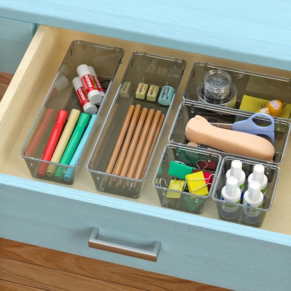 6 Pack Clear Drawer Organizer Set, Acrylic Drawer Storage Trays, Storage Bins fo