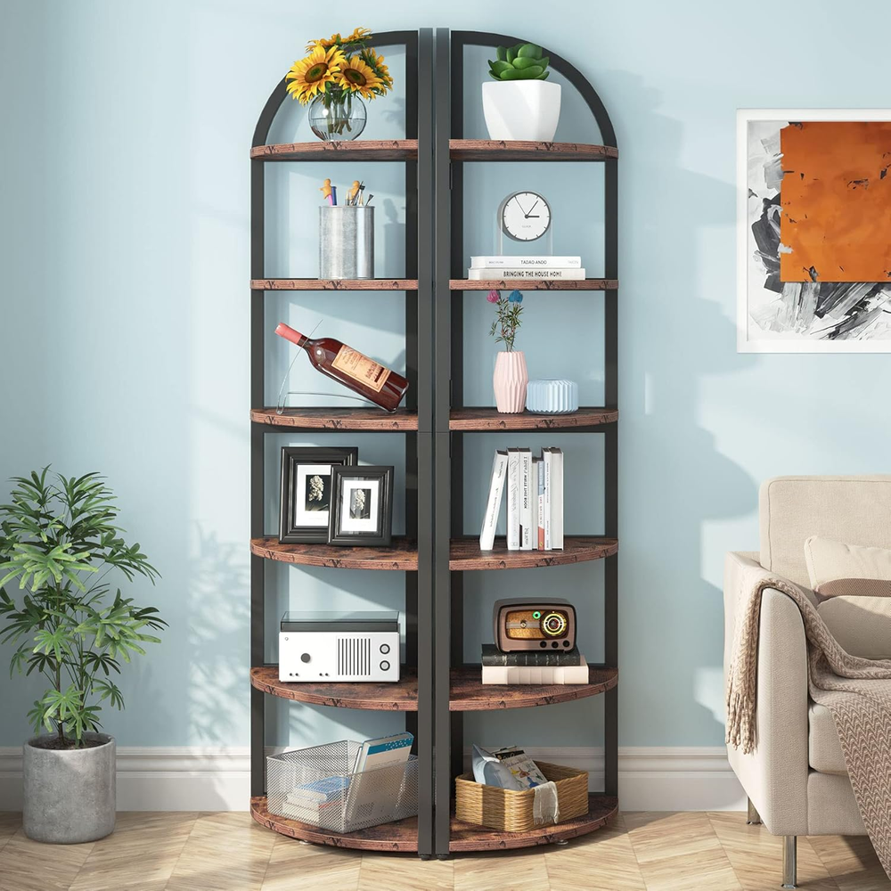 6 Tier Tall Corner Bookshelf for Small Spaces - Rustic Wood Plant Shelf 71 Inch