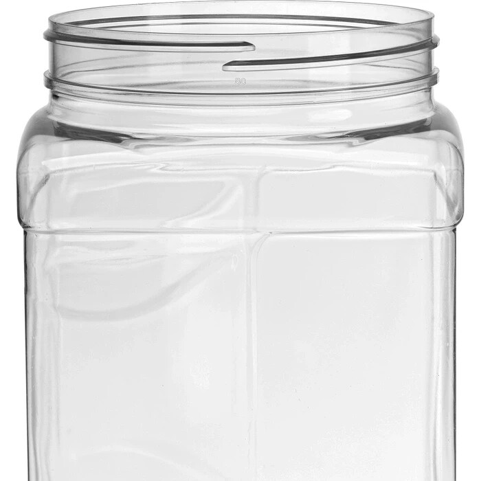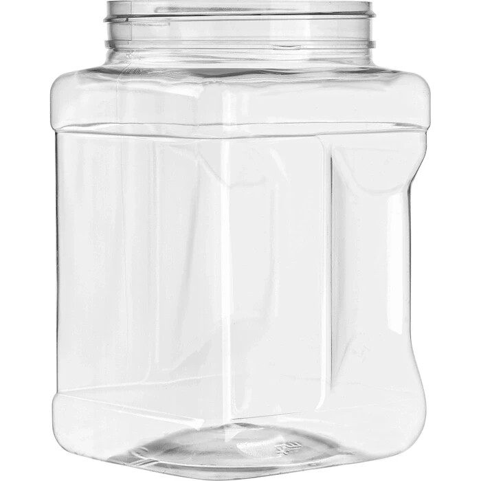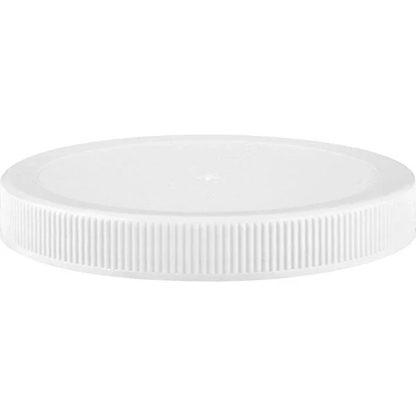 The 68W110 is a 64 fl. oz. 110mm 110-400 clear polyethylene terephthalate (PET) plastic pinch grip jar. This wide-mouth canister has molded indentations on the sides, allowing the user a sturdy grip. The clear plastic allows full view of the product inside while the square body and base makes this container space efficient for shipping and shelving. The 67W110 is a 110mm (110-400 neck finish) White continuous thread plastic cap with a three-ply co-extruded polyethylene foam liner (F217 style). This closure is made of polypropylene (PP) plastic and fits our 110-400 vials, bottles, and jars. This plastic cap features a textured (matte) top and a ribbed side. The ribbed-sided design allows for ease of use when removing the lid. The 3-ply foam liner is compatible with many substances and is great for general lining applications