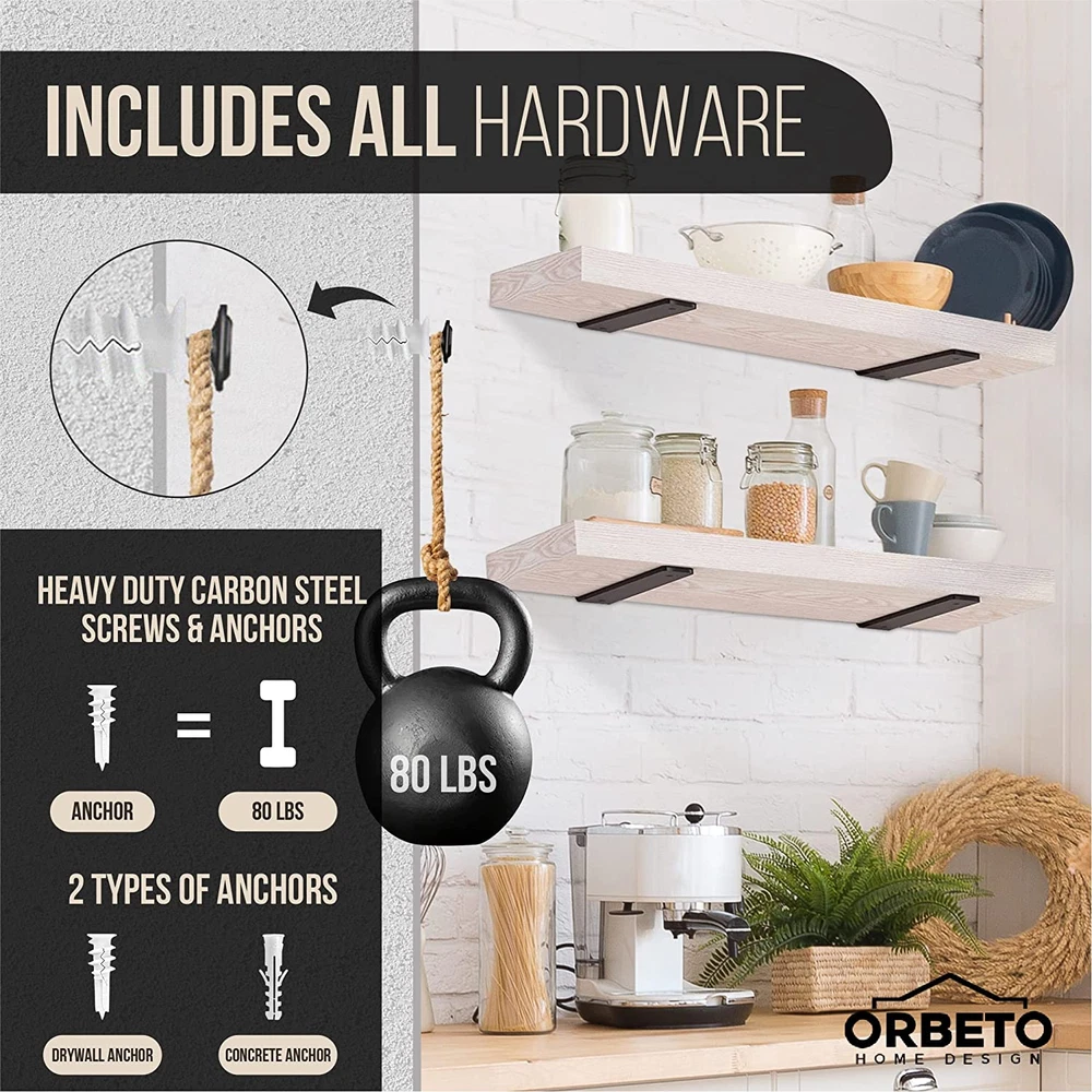 Store New Arrivals Add to Favorite View Feedback Contact Heavy Duty Floating Shelf Bracket (6 Inch-6 Pack) with (1/4”-Thick) Metal Black Description Style BLACK 6 PACK Country of Origin China Thickness 0.25 Inches Batteries Included? No Size Name 6 inch - 6 pack Batteries Required? No Finish Black Number Of Holes 6 Product Dimensions 6 x 4 x 1.6 inches Material Cast Iron, Iron, Metal Installation Method Wall-Mounted Maximum Weight Capacity 160 Pounds Included Components Bag Item Package Quantity 1 Item Weight 5 pounds Size 6 inch - 6 pack Special Features Easy to Install Mounting Type Wall Mount Color Matte Black Shape Corner Manufacturer ORBETO Number Of Pieces 6 [STRONGEST BRACKETS YOU'LL EVER FIND] - Strongest available with sturdy stamped steel, thicker 1/4", and 4 screws instead of the usual 2 to allow shelf to hold over 160- 200 pounds. Great for heavier items like books and collectibles. [ENJOY GENUINE FLOATING BRACKETS] - Special bracket design makes them disappear when in everyday use. You get a true floating shelf experience. Powder Coated to prevent damp air from deteriorating the metal. Will look good and work well for decades of better organization and attractive display. [INCLUDES ALL HARDWARE FOR IMMEDIATE INSTALL (NOT INCLUD BOARDS)] - Heavy duty carbon steel screws with super silicone dry wall anchors to achieve strong grip on any surface. Note the countersunk screw holes that hide the screw inside for a neater, more professional look. [NO INSTALLATION EXPERIENCE NEEDED] – We made a special kit anyone can install with no experience. The detailed illustrated installation instructions are easy to follow. We also include a handy spirit level to ensure your brackets are straight for a level shelf. [120 DAY REFUND] – Enjoy lifetime durability with 100% money back refund for 120 days. Many people are stocking up with several in the various lengths to fully outfit their home and business. Product Description ABOUT US We offer the best prices around on high quality products. Our E-store includes media such as books, movies, music and games while offering electronics, toys, sporting apparel, clothing, tools, general home, garden items and more. SHIPPING We are always working hard to ensure your package arrives as soon as possible. Please understand that some factors like weather, high postal traffic, and the performance of shipping companies are outside of our control. We offer free shipping to the lower 48 states and ship within 2 business days of payment, usually sooner. We do not accept P.O. Boxes. Please provide a physical address. RETURNS We offer a 30-Day Return Policy on items which you are not completely satisfied with. You have the option for a full-refund or an exchange of the item. No returns are available on items shipped outside of the USA. PAYMENT We accept PayPal. CONTACT US This page content is yet to come Please ad us to your favorite seller and visit again later Thank You CUSTOMER SATISFACTION We try our very best to make sure every customer is completely satisfied. If there's a problem, message us! We're happy to help.