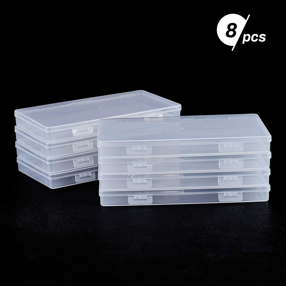 Features: Made of premium plastic, which is durable and sturdy Convenient double buckle design, stronger and easy to use. Suitable for holding pencils, painting brushes, pottery clay tools, vinyl tools Specification: Material: Plastic Color: Clear About : We have special departments to ensure that strict quality control on all quality problem before delivery. We are always committed to providing the most satisfactory service to our customers, if you have any questions, please feel free to contact us. 【Package Includes】: 8 pack rectangle clear plastic containers, can provide enough storage support for your items in daily life 【Size Reference】: 6.49x3.54x0.62 inch/16.5x9x1.6cm(LxWxH), it’s OK to place them in drawer or closet 【Good Quality】: Made of premium plastic, which is durable and sturdy, not easy to break; A special designed lock buckle on both sides makes it easy to open 【Wide Usage】: Suitable for holding paper cards, photoes, vinyl tools, jewelry accessories, pencil, brushes, etc 【Convenient to Use】: Plastic containers can keep items separate and well organized. Transparent appearance makes it easy to distinguish out the stuff, which can save much time