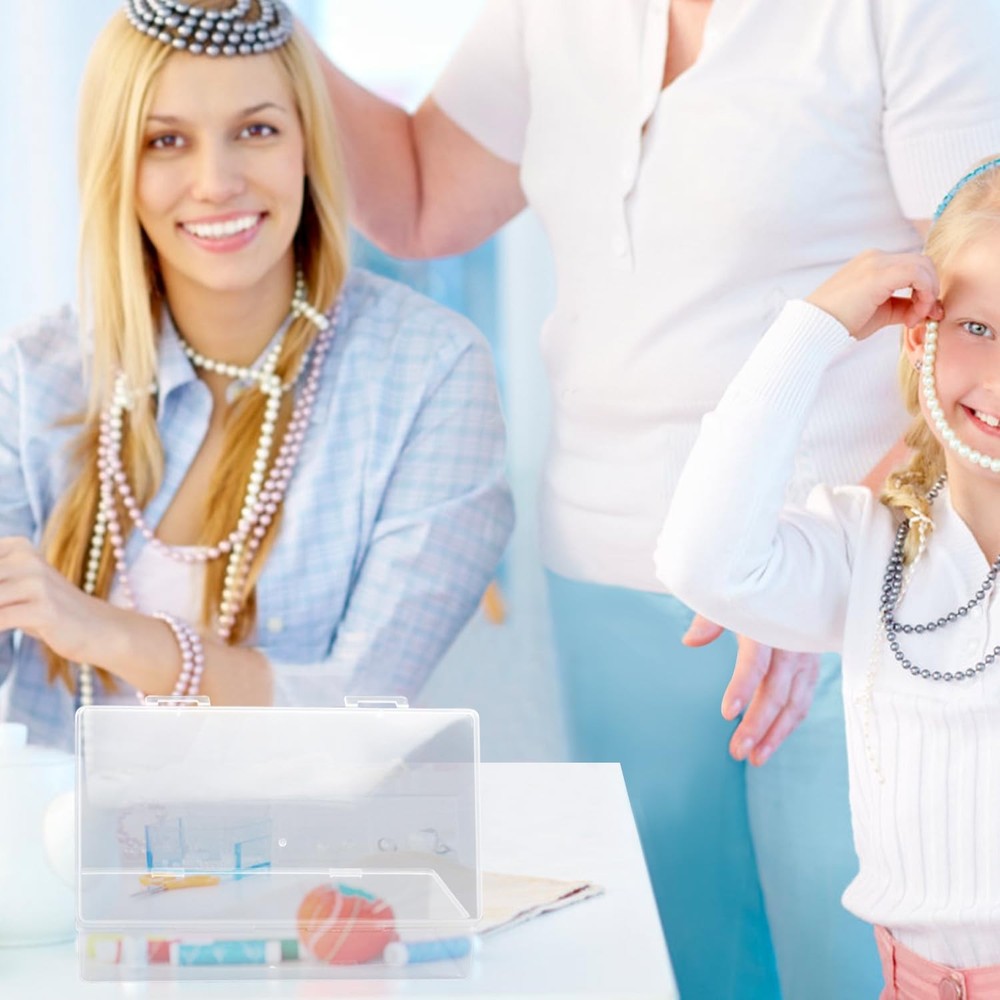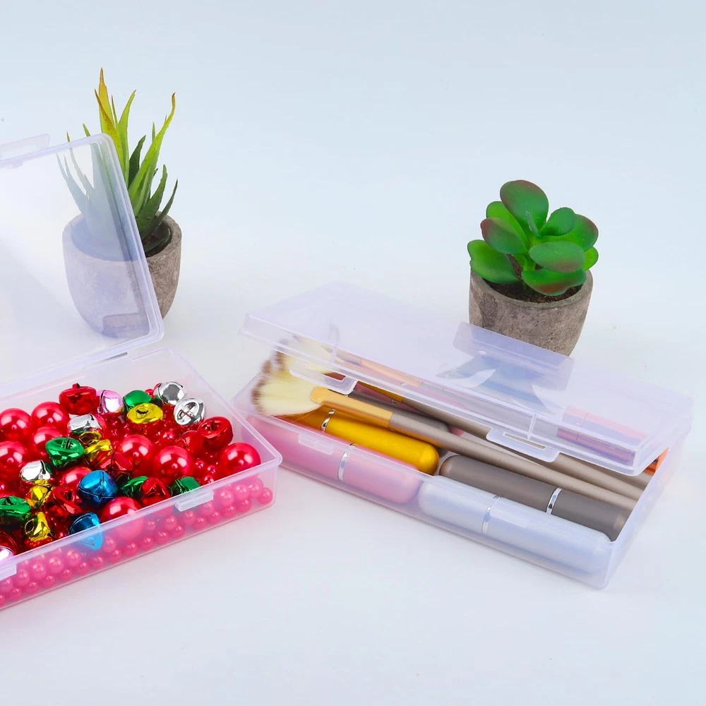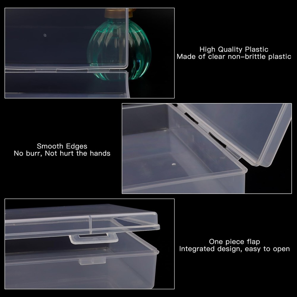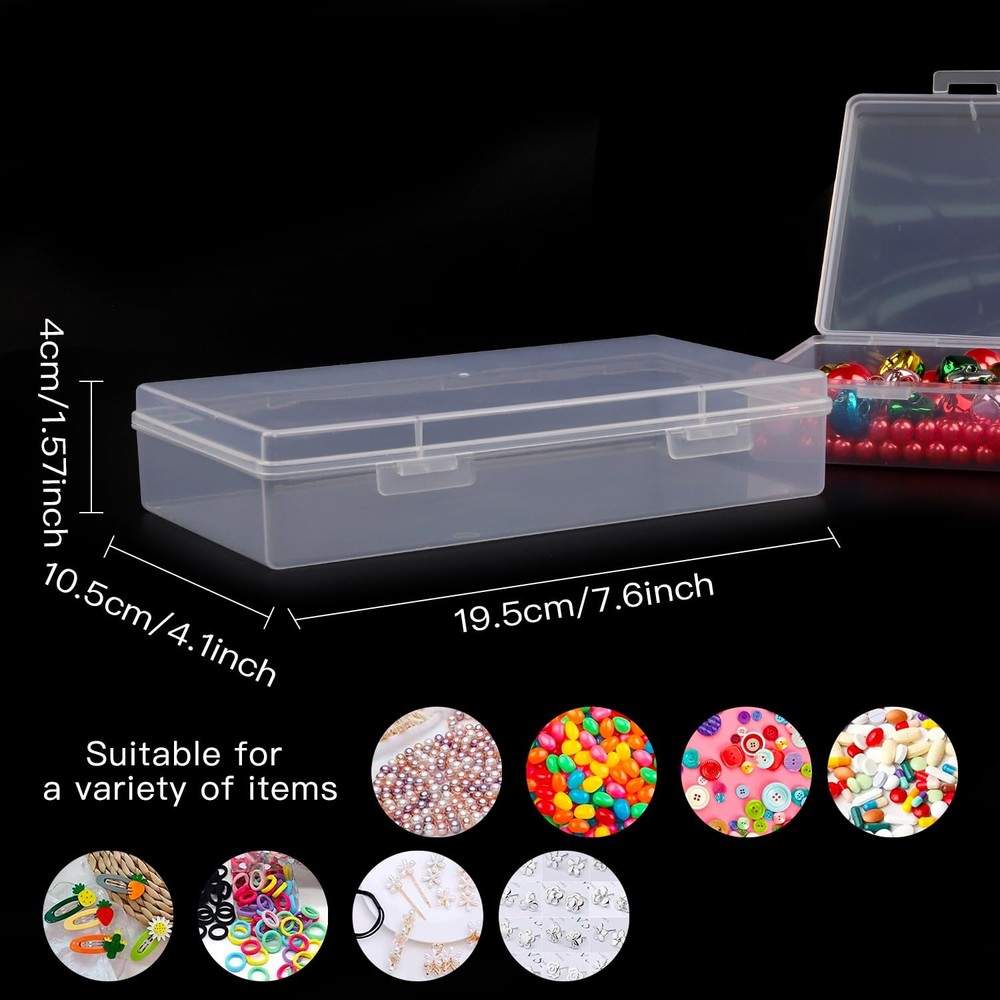 Description: 8 Packs small rectangle clear plastic box bead storage box with flip cover for crafts, tiny bead, jewelry, findings, pills, ear studs, necklace, watch parts and other small items. The compact design is an ideal space-saving solution, freeing up more of your valuable desk or shelf space. These cases are portable, perfect for carrying files to meetings or working remotely, while also offering secure and durable protection for your important documents. They offer multipurpose functionality, perfect for various uses, from storing academic papers for students to archiving important documents in a home office or organizing project files in a corporate setting. They are easy to use - simply open the case, place your documents inside, and close the case securely. To clean, wipe with a damp cloth and let it air dry. Specification: Material:Plastic Size:7.7 x 4.1 x 1.6 Inches Quantity:8 Pack Our goal is to provide you with high-quality, practical office organization solutions. The 8-pack File Portable Project Case is not just a product - it's a solution to improve your productivity and create an organized and efficient workspace. Discover the benefits of a more organized life today with our top-tier filing and storage solutions. Easy to Distinguish & Identify- The package include 6 pack large size plastic storage box, these rectangular clear plastic container boxes help you to separated different items and make them easy to identify, convenient for you to carry and use while traveling. Durable & Snap-Tight Latch- These transparent containers boxes are made of non-toxic polypropylene materials and non-fragile plastics.The highly material made this storage boxes more durable and sturdy.The edges are smooth and seamlessly.Can be used to store small items for a long time.Not easy to break. Portable and Versatile- Our File Portable Project Case offers exceptional versatility. Ideal for meetings, travel, or daily use, these cases secure your documents wherever you go. Enhance your office supplies with us. Multi-Purpose Storage Box- This versatile small plastic container box is a necessary storage tool for organizing small items, small parts, crafts, beads, coins, pills, ear studs, necklace, jewelry and watch findings; Also can be applied as hardware boxes and parts packaging display boxes. Large Size for All Storage- The package include 8 pieces rectangular plastic containers clear plastic storage boxes with hinged lids, each plastic storage box measures approx. 7.7 x 4.1 x 1.6 Inches, can satisfy your various storage needs for replacement and sharing. Multipurpose Functionality- Perfect for students, home offices, and corporate environments. From archiving to preparing for presentations, our File Storage Box is your go-to organizational tool.