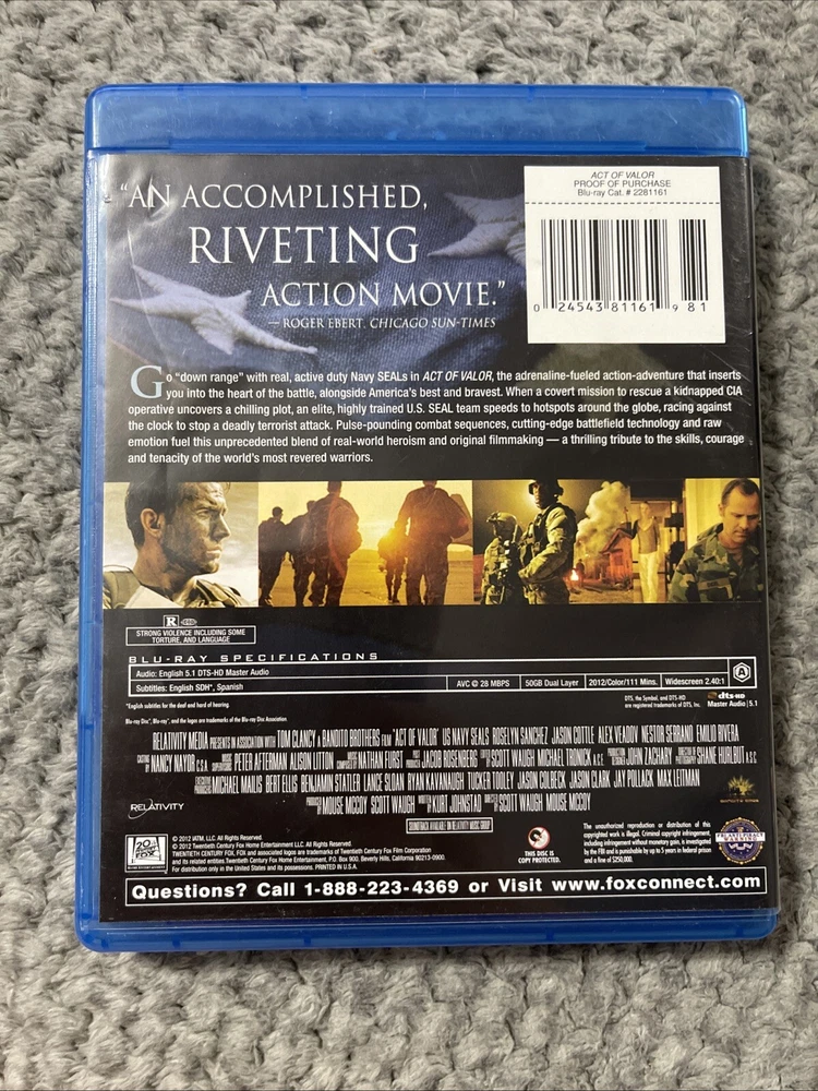 This Blu-ray single disc DVD of "Act of Valor" is a must-have for movie enthusiasts who appreciate action-packed and drama-filled movies. With its stunning picture quality and crystal-clear sound effects, this DVD offers an unparalleled viewing experience that will leave you at the edge of your seat. Featuring an all-star cast and top-notch direction, this movie is sure to become a fan favorite. Whether you're a die-hard action movie fan or simply looking for an exciting movie night, "Act of Valor" is the perfect choice. So why wait? Order your copy today and experience the thrill and drama of this unforgettable movie!