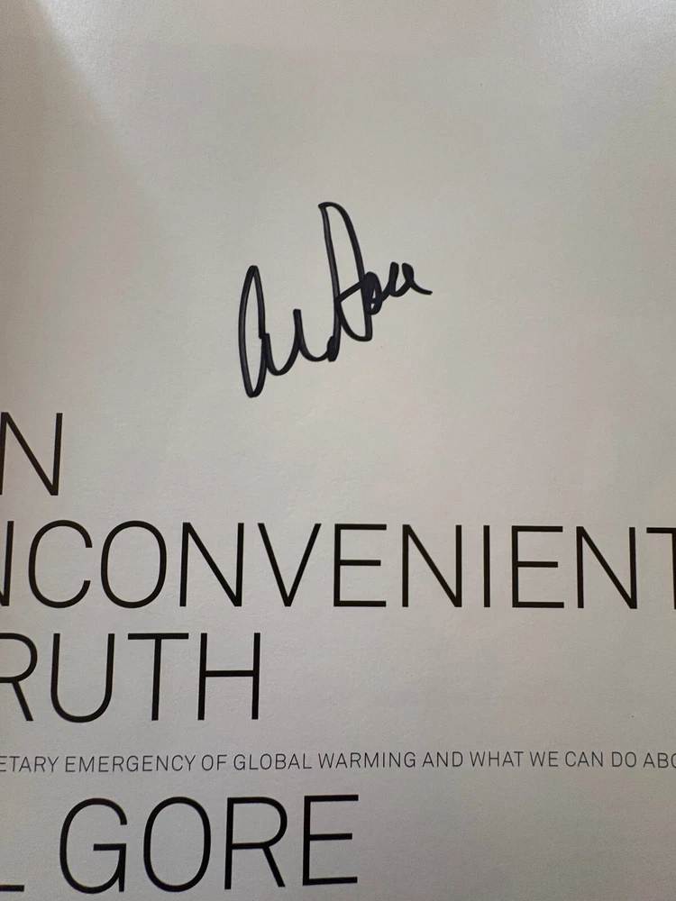 AL GORE AUTOGRAPHED "AN INCONVENIENT TRUTH" 2006 UNSTATED THIRD EDITION SOFT COVER MEMOIR OF The PLANETARY EMERGENCY OF GLOBAL WARMING CRISIS. VERY GOOD CONDITION ~ MINOR COVER STAIN BUT HARDLY ANY AGE WEAR ~ STILL LOOKS TERRIFIC. SEE SCAN, PLEASE. PHOTOS FROM MEET AND GREET AVAILABLE TO WINNER VIA EBAY EMAIL ONLY PROFESSIONALLY PACKED ~ SHIPPED SAFE And SECURE ALL WITHIN 24 HOURS OF RECEIPT OF SECURED FUNDS. WIN OR BUY MULTIPLE SIMILAR ITEMS And PAY SHIPPING FOR ONLY THE FIRST. SELLING MY MASSIVE COLLECTION OF AUTOGRAPHED BOOKS And SOOOOOO MUCH MORE!!