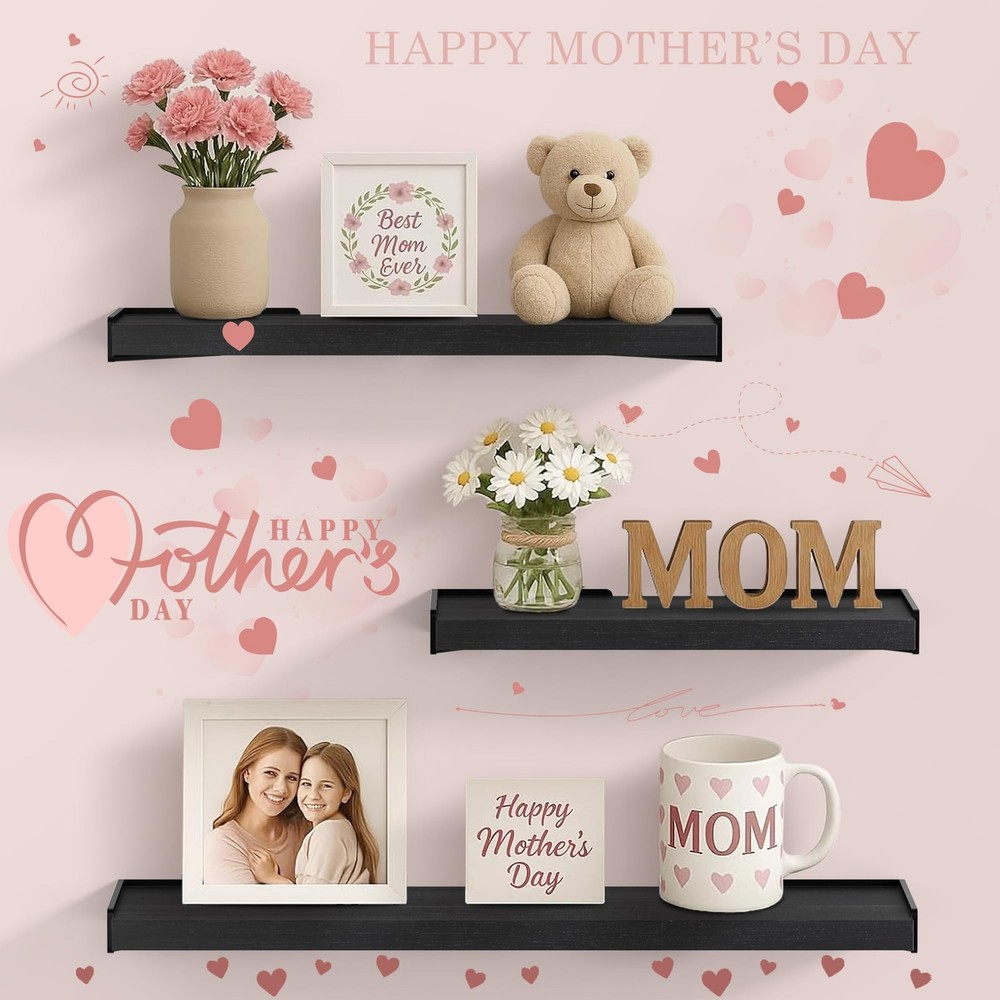 Love these rustic floating shelves! They add a cozy, farmhouse charm to any room. Super easy to install and sturdy enough to hold books, plants, and decor. The natural wood grain gives them a warm, authentic look. Perfect for small spaces—highly recommend!