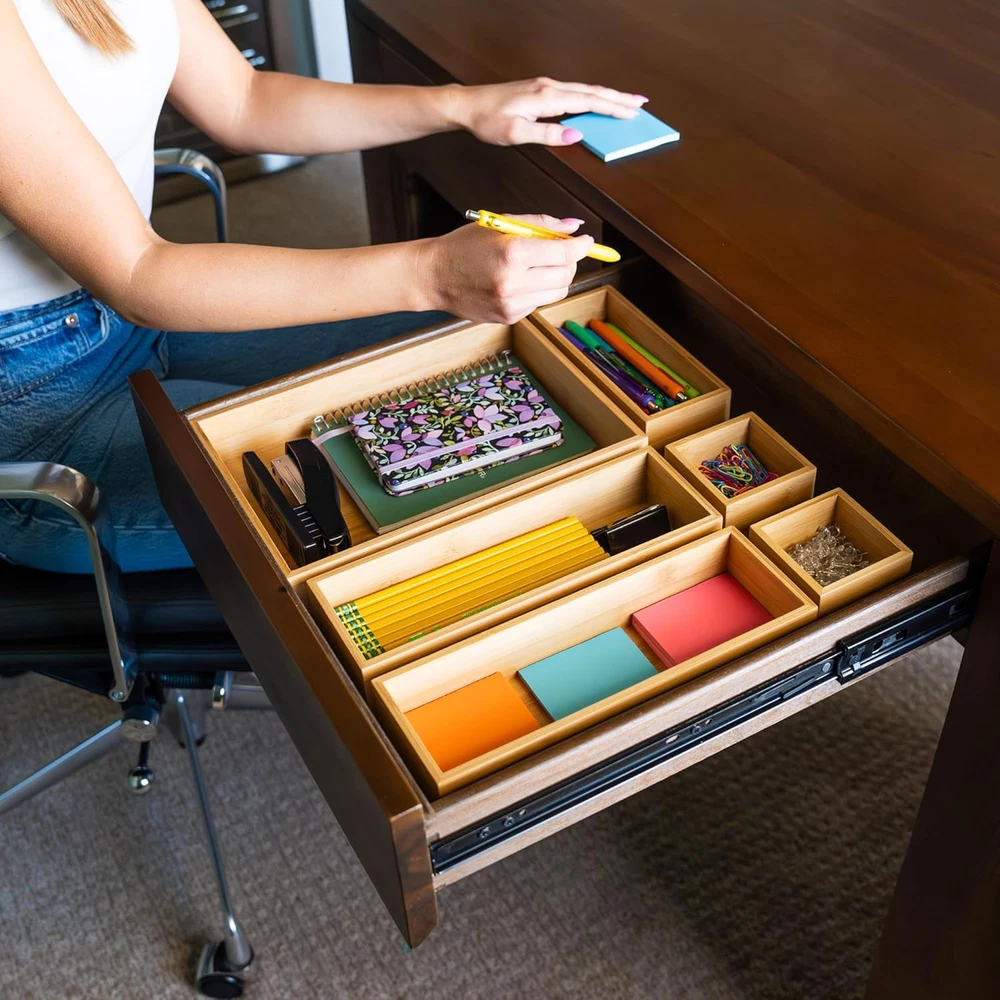 7-Piece Bamboo Drawer Organizer Set for Storage & Tidying