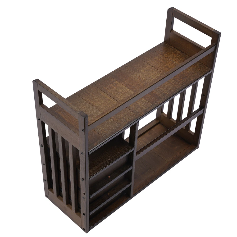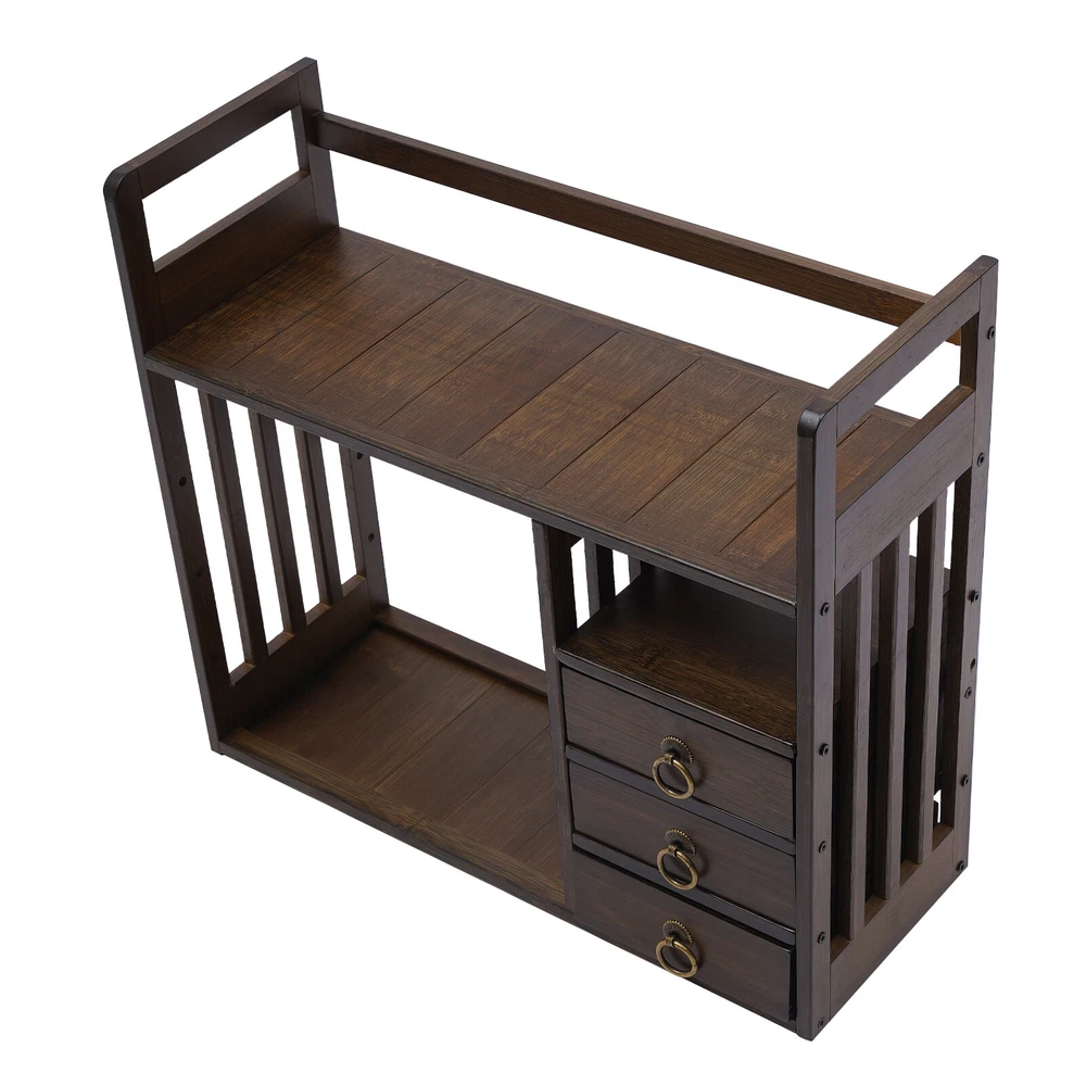 Features: With Drawers Number of Shelves: 3 Mounting: Free Standing Color: Nut-brown Assembly Required: Yes Item Width: 7.5inch Style: Art Deco Set Includes: Shelving Unit, Storage Box Shape: Rectangle Suitable For: Books Additional Parts Required: No Manufacturer Warranty: 3 Years Type: Bookcase MPN: Does not apply gtin13: Does not apply Door Mechanism: N/A Item Height: 17.7inch Brand: Unbranded Item Length: 19.7inch Maximum Weight per Shelf: N/A Model: N/A Number of Items in Set: More Than 8 Material: Bamboo Item Weight: 3.5kg/ 7.7lb Room: Home Office/Study Product Line: N/A UPC: Does not apply Pattern: N/A Department: N/A Maximum Weight Capacity: 25kg/55lbs