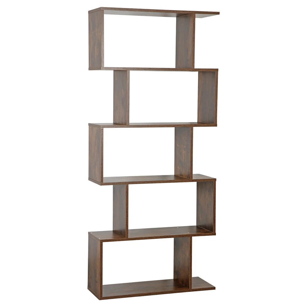 Features: 【 5-tier S-shaped Bookcase】 The open storage shelf bookcase is made of solid chipboard, it is solid to use, and stable retro look solid legs, making it sturdy to use, espeacially s-shaped design. 【Rustic Color for Home Decor】 The Chipboard Cupboard is beautiful appearance, which is in rustic brown, This adds the perfect pop of color to the room in progres the cozy color will add a simple and elegant taste for your room. 【Easy to Set Up】 All parts and manual are included, it will take a few mintues to assemble. If you have any problem assembling it, please contact us, we will help you. 【Ideal Storage Divider Bookshelf】 The 5- Shelves s-shaped bookcase which can be used to clarrify different books, or some other home stuff. Holds a decent amount of books, It will make your home organized and clean. S-shaped style is so retro to make your room cozier. 【Maximize Your Storage Space & Books Classification】 Eliminate clutter and maximize space, Create storage and display space for any living area in the home. Different compartments to sort different books. 【Easy to Clean】 Smooth finish makes it easy to clean with a damp cloth or sponge. 【Wide in Use】 Our 5-tier s-shaped bookshelf is good for clothes storage, book storage, decoration display, plants platform and so on, it can meet your needs when you want to add a organizational atomosphere. 【Customer First Principle】 If you have any problems with the item, please contact us first and you can send us message directly on eBay, we willl give you the satisfied solution. Specifications: Color: Rustic Color Material: PB, MDF Item Weight: 40.92lb Overall Dimensions: 27.56 x 9.45 x 62.6" Weight Capacity: 33 LBS / Shelf